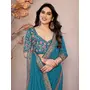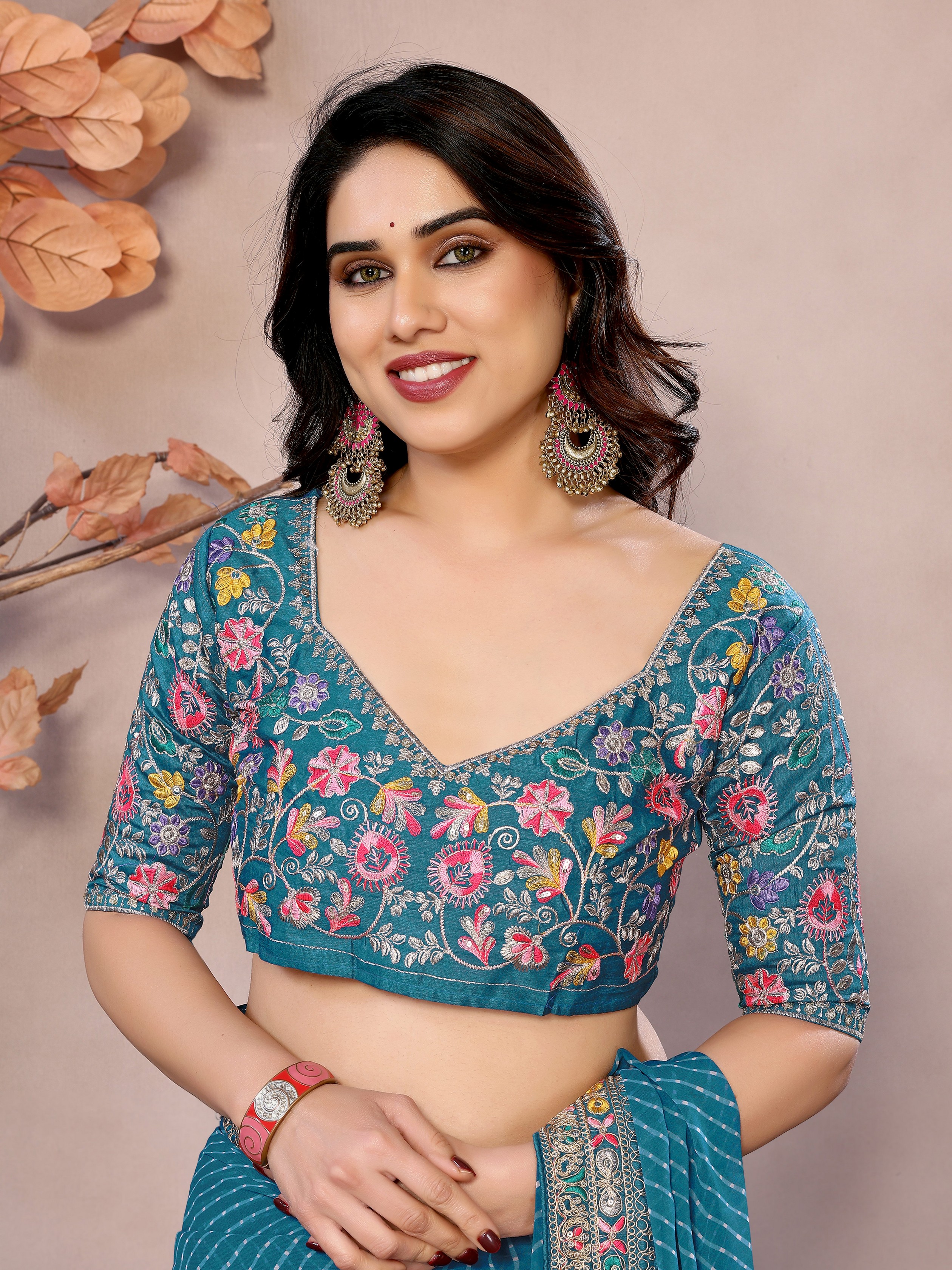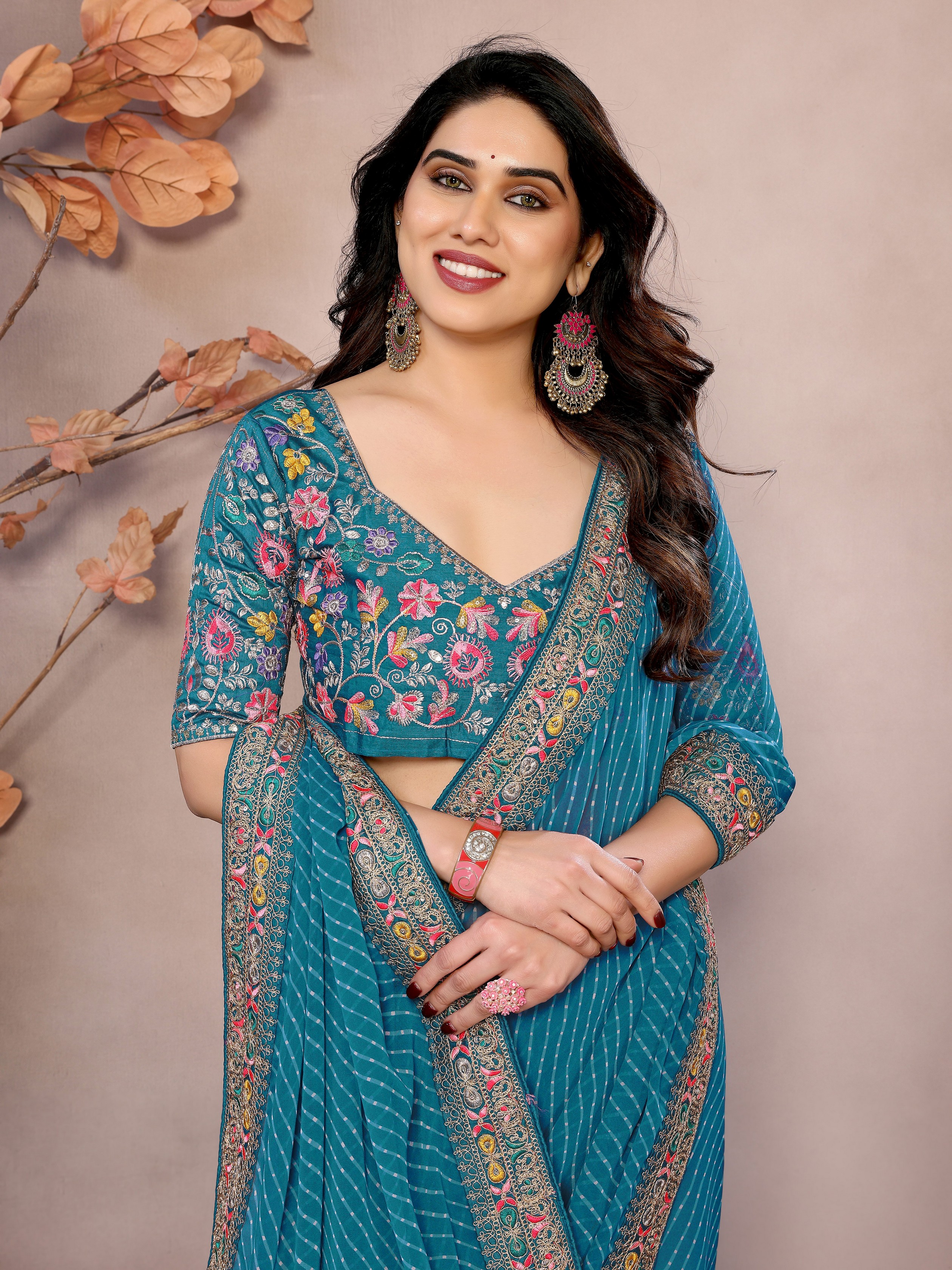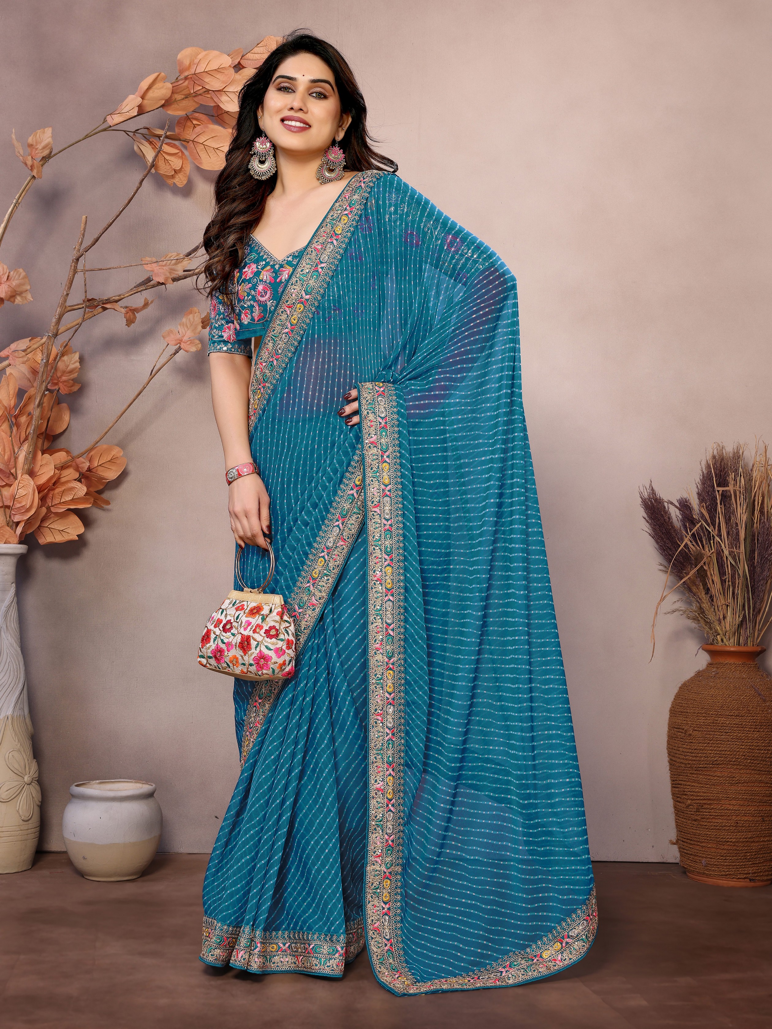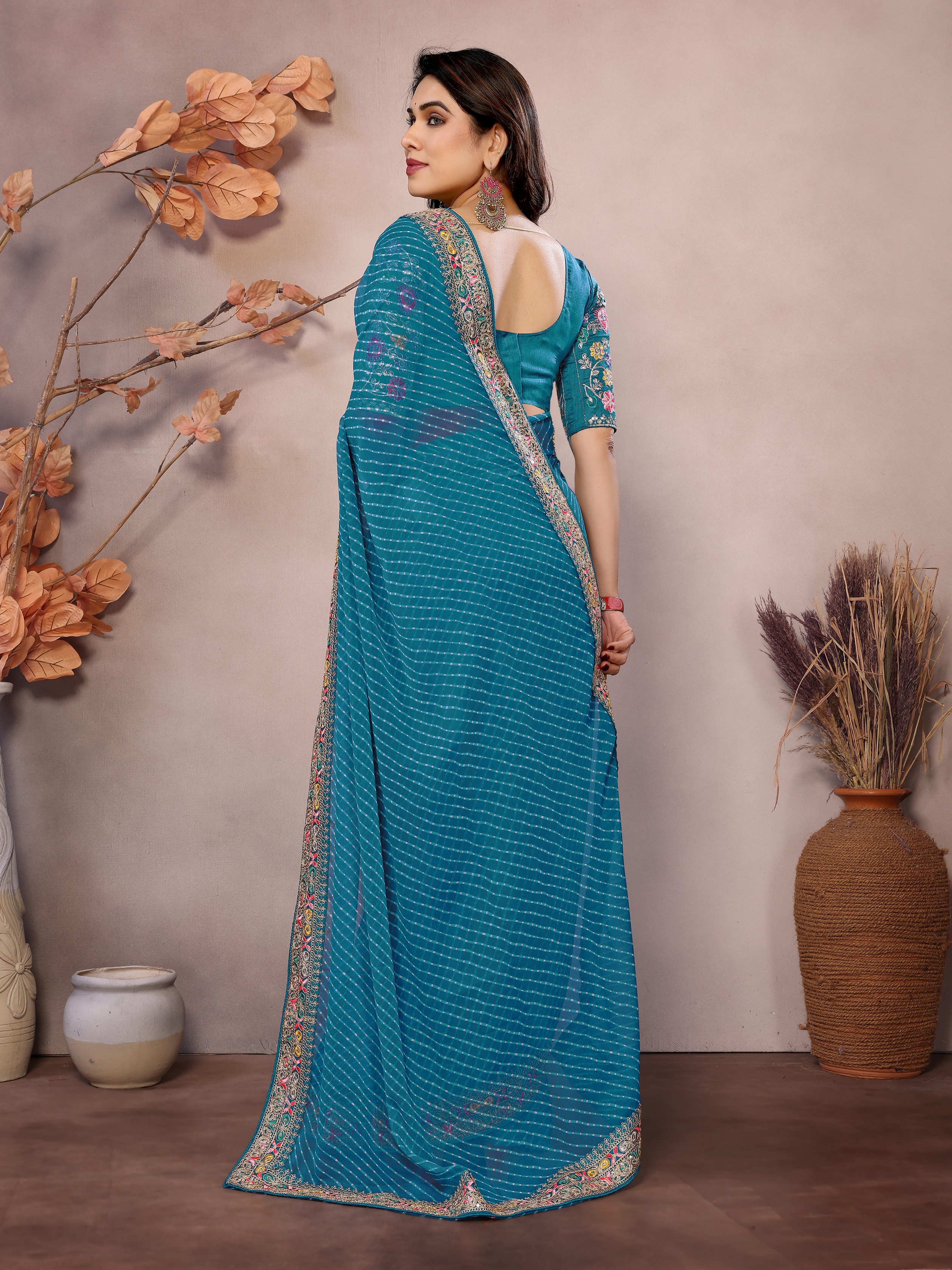 Sea Green Color Georgette Fabric Designer Embroidered Traditional Leheria Saree