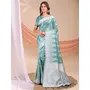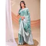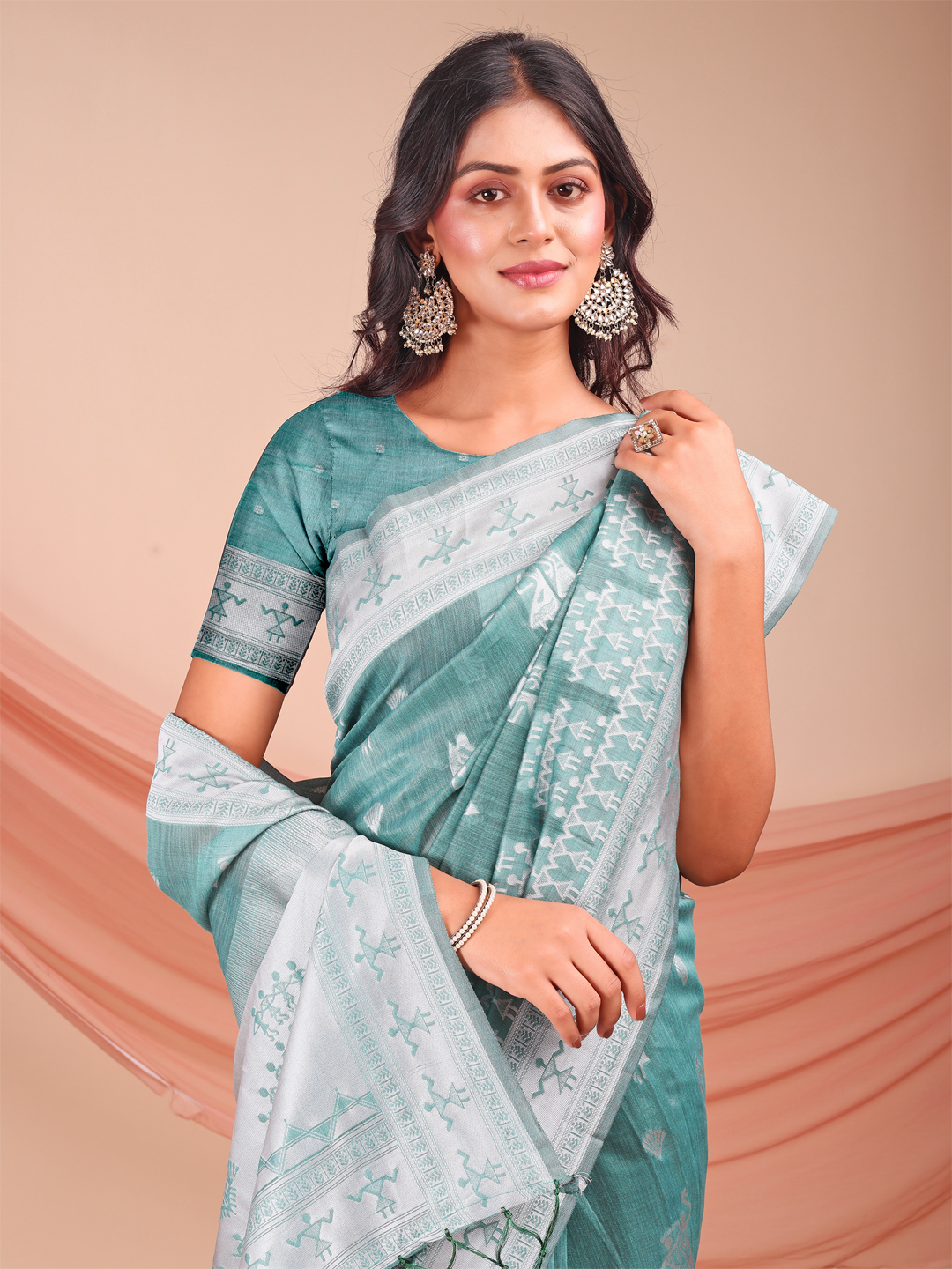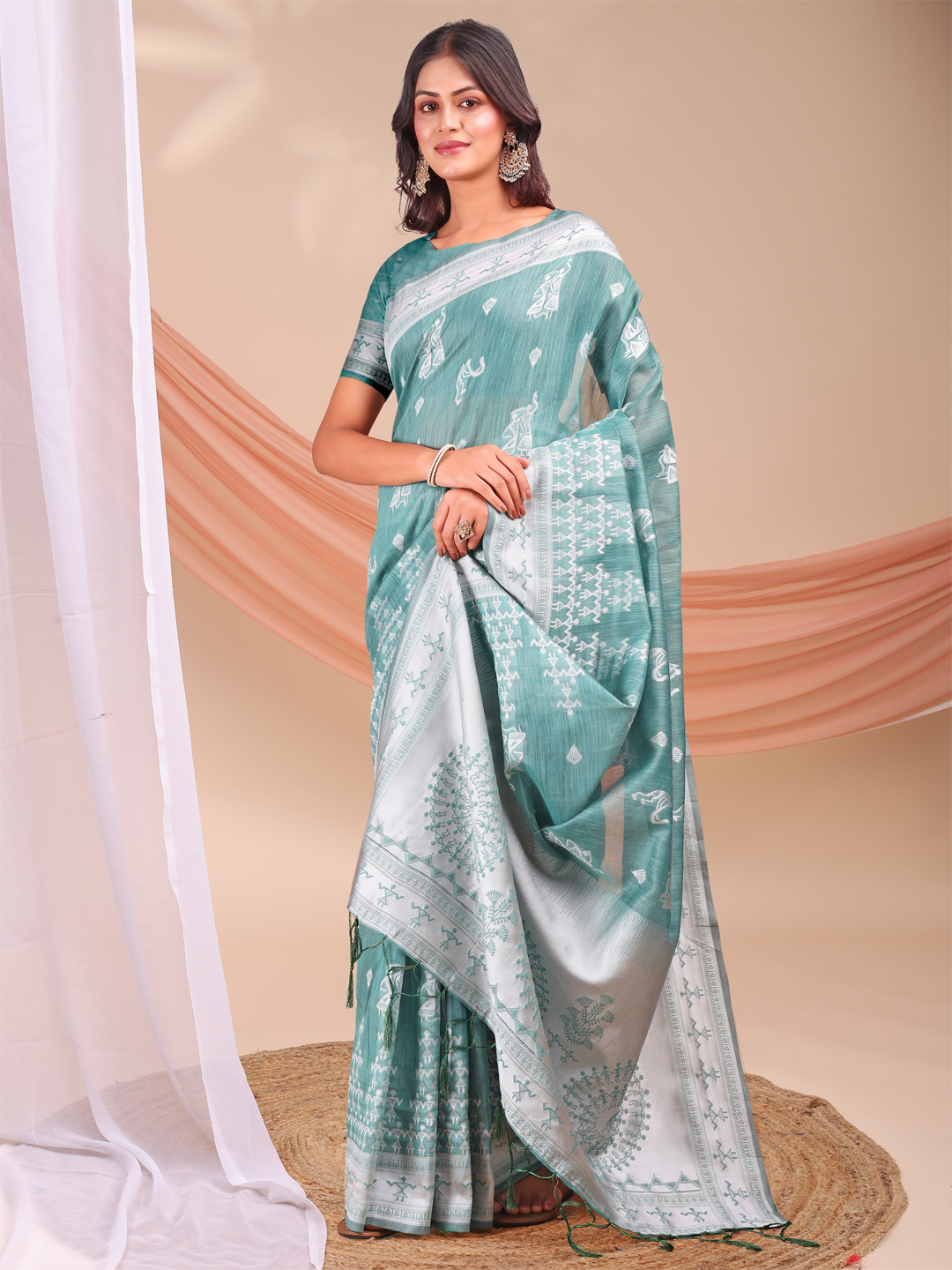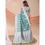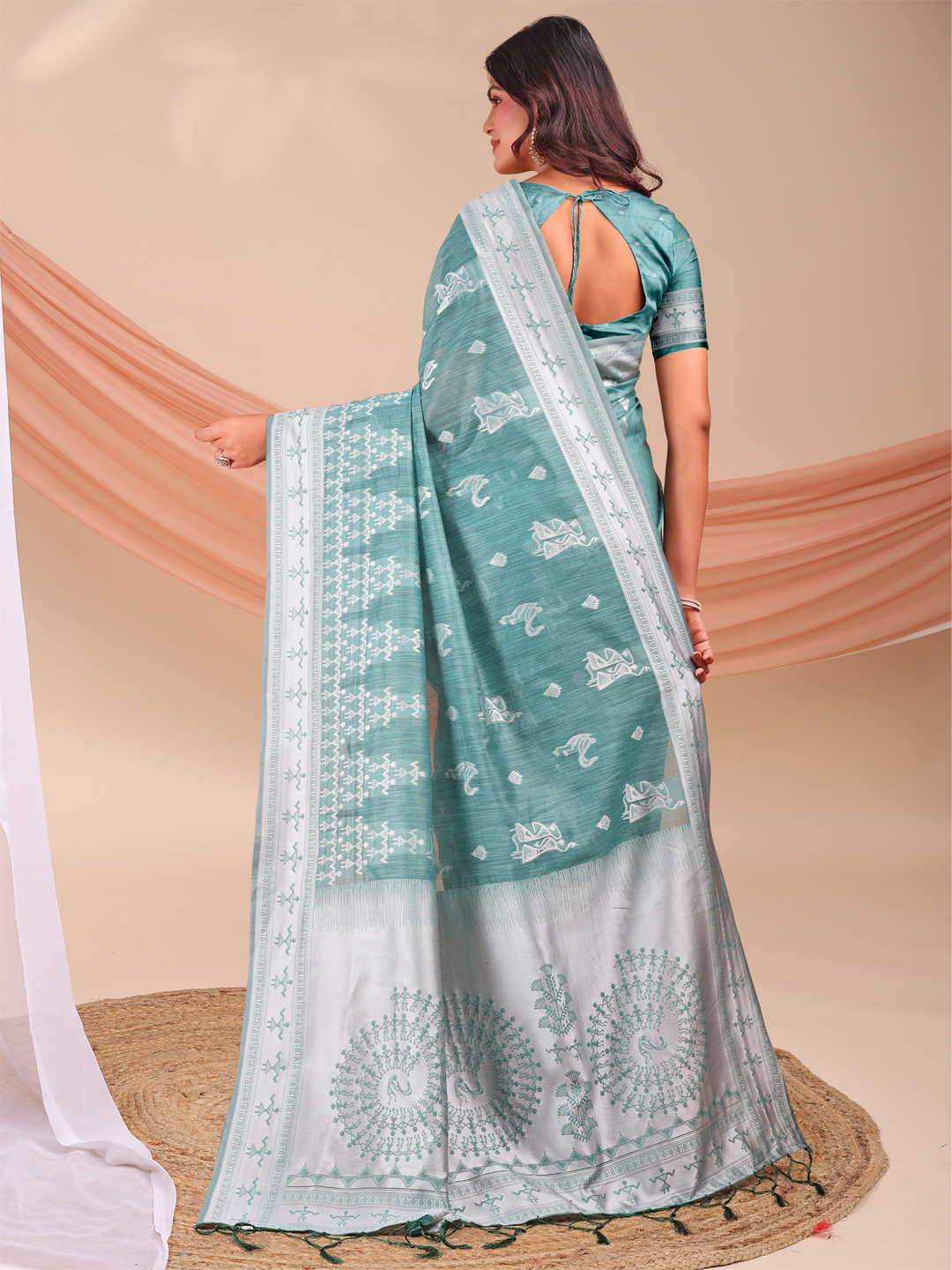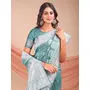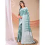 Sea Green Color Linen Cotton Fabric Wevon Jacquard Designer Beautiful Partywear Saree