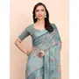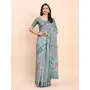 Sea Green Color Linen Cotton fabric Woven Border Saree With Smart Print Designer Looks