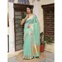 Sea Green Color Rich Ethnic Cotton Based Saree with Rich Woven Designer Looks