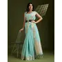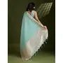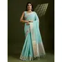 Sea Green Color Tissue Linen Silk Weaving Checks Designer Graceful Trendy Saree