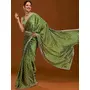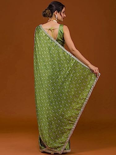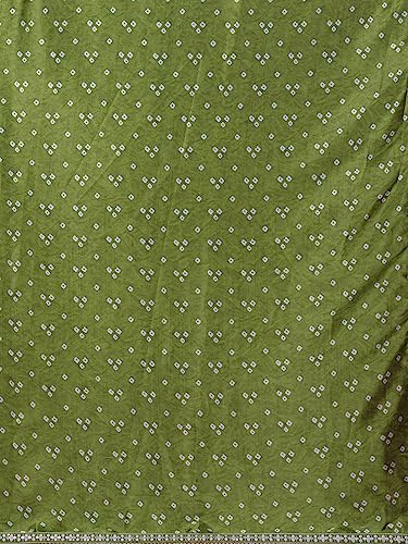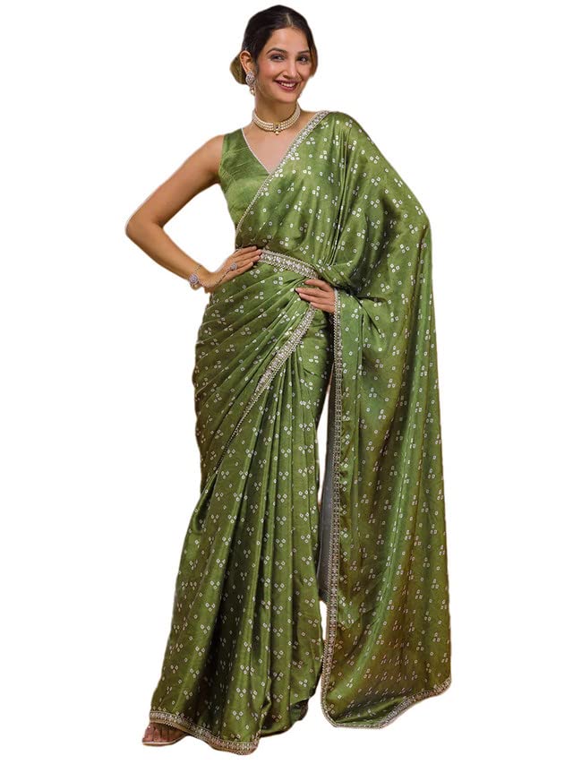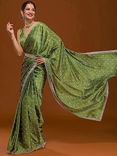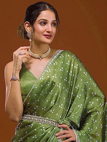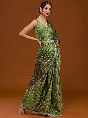 SIRIL Women's Satin Silk Bandhani Printed, Lace (Belt) Saree with Unstitched Blouse Piece(2981S144_Olive Green)