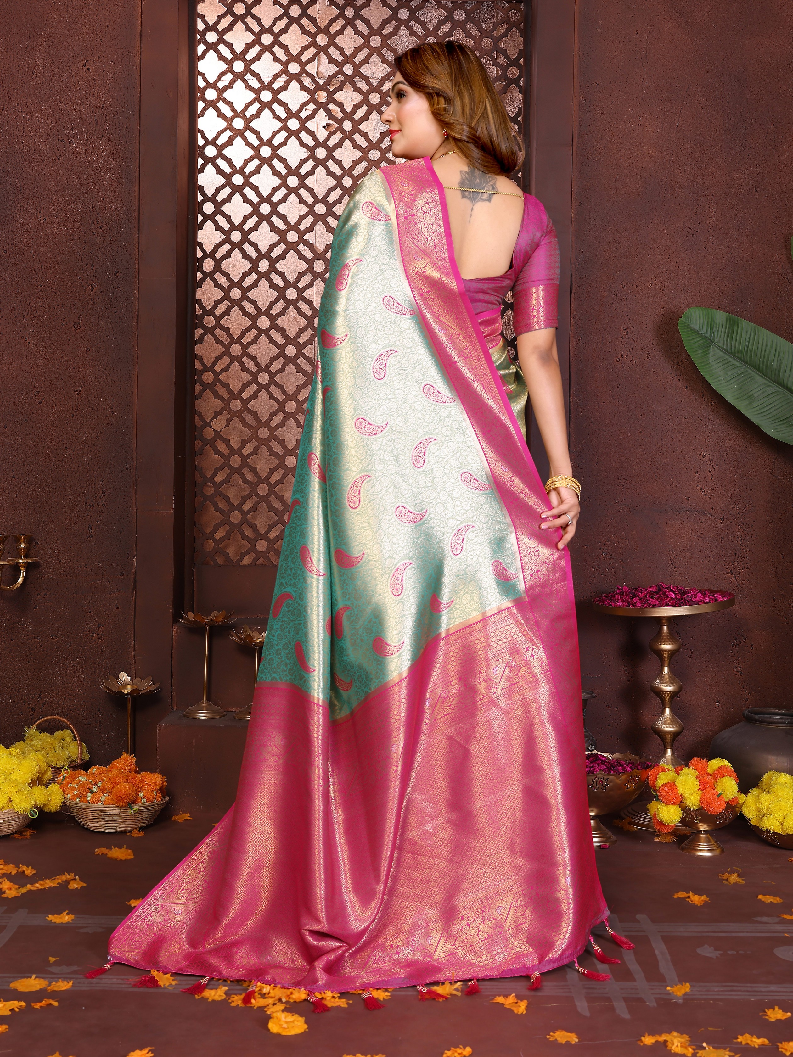 Sky Blue Color Banarasi Tissue Silk Woven Rich Paithani Designer Ceremonial saree