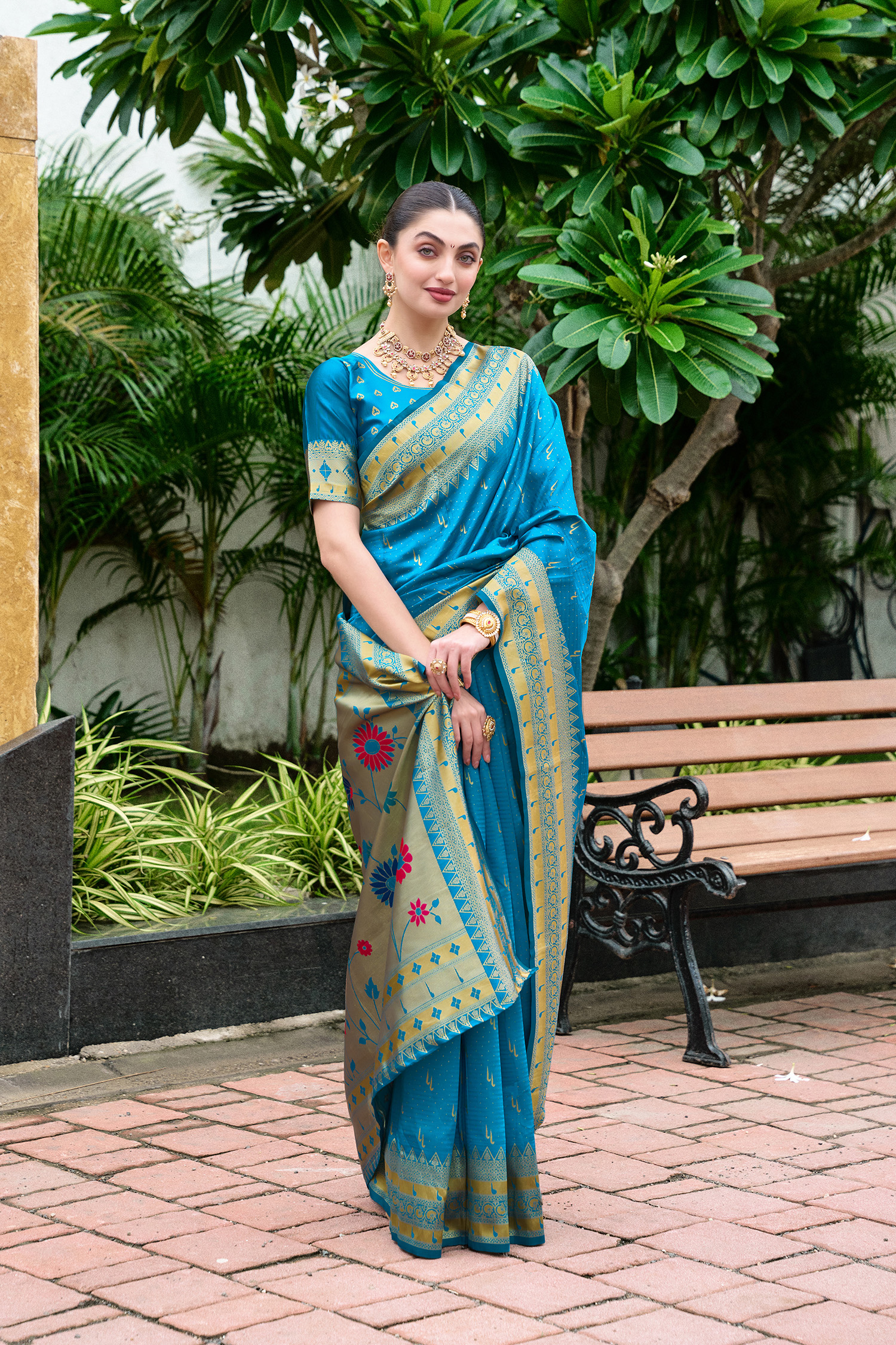 Sky Blue Color Beautiful Silk Blended Woven Zari Designer Ceremonial Saree
