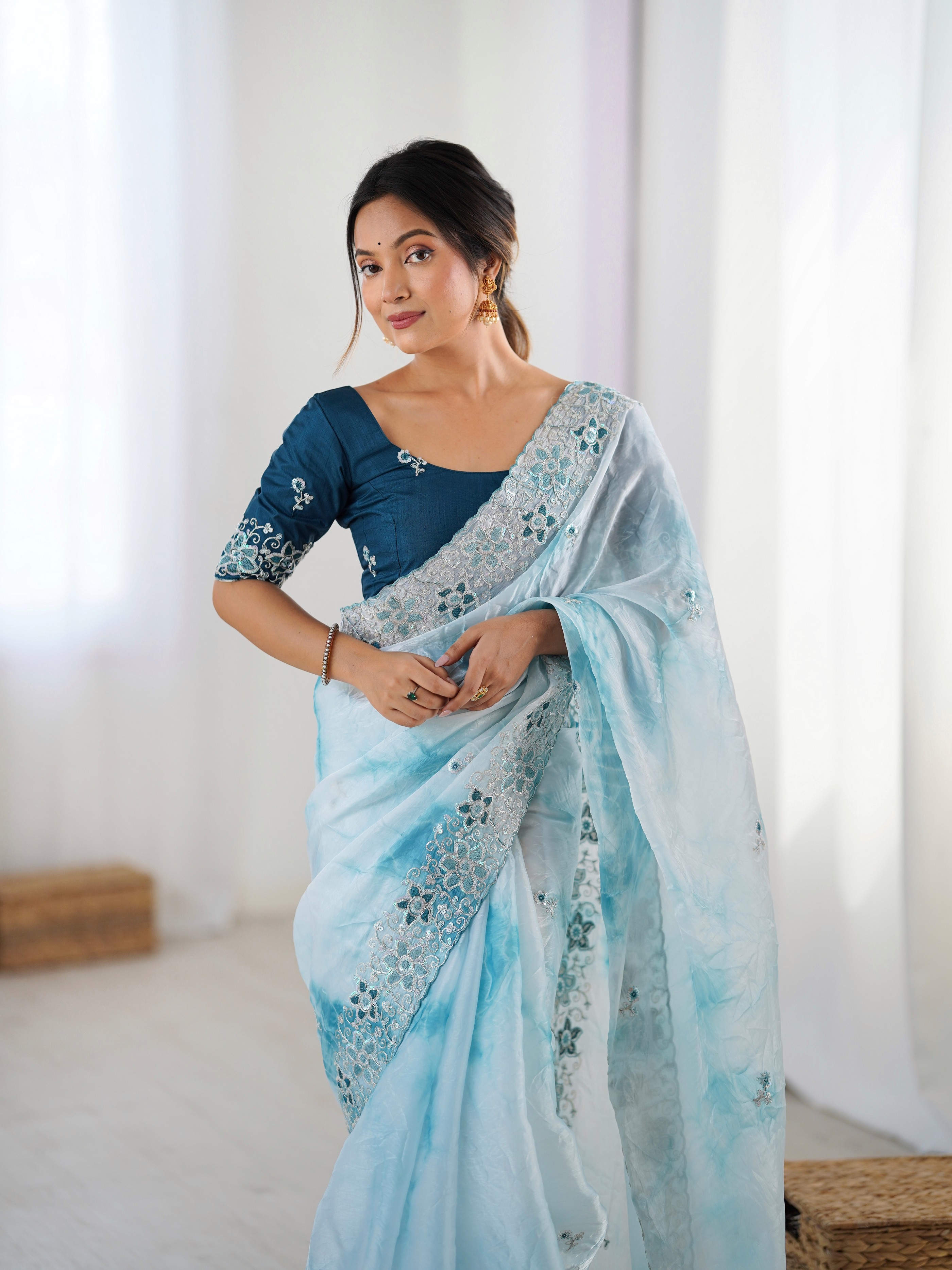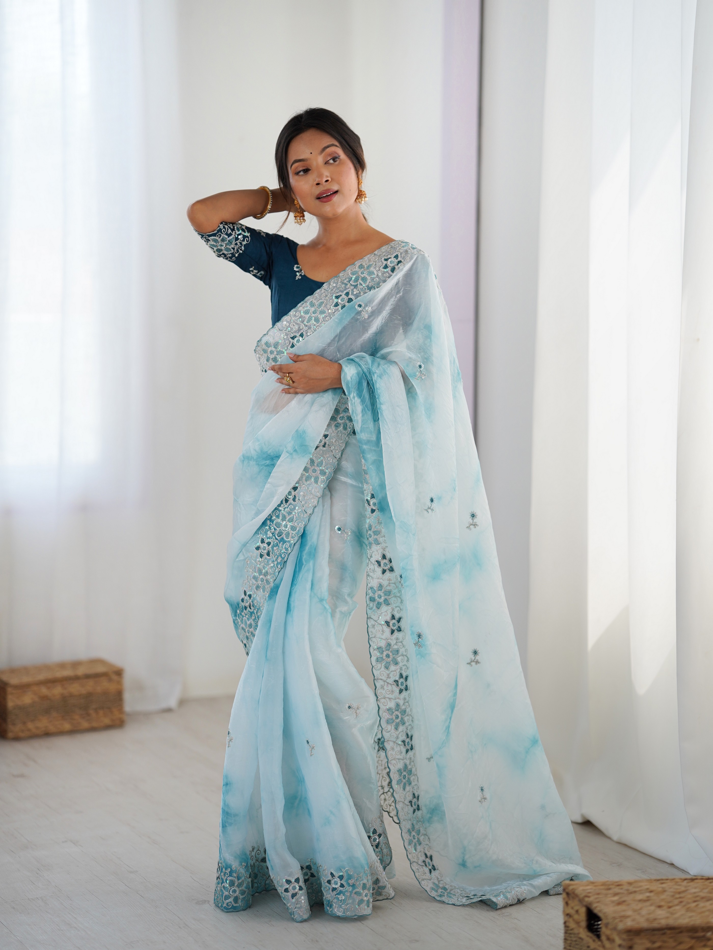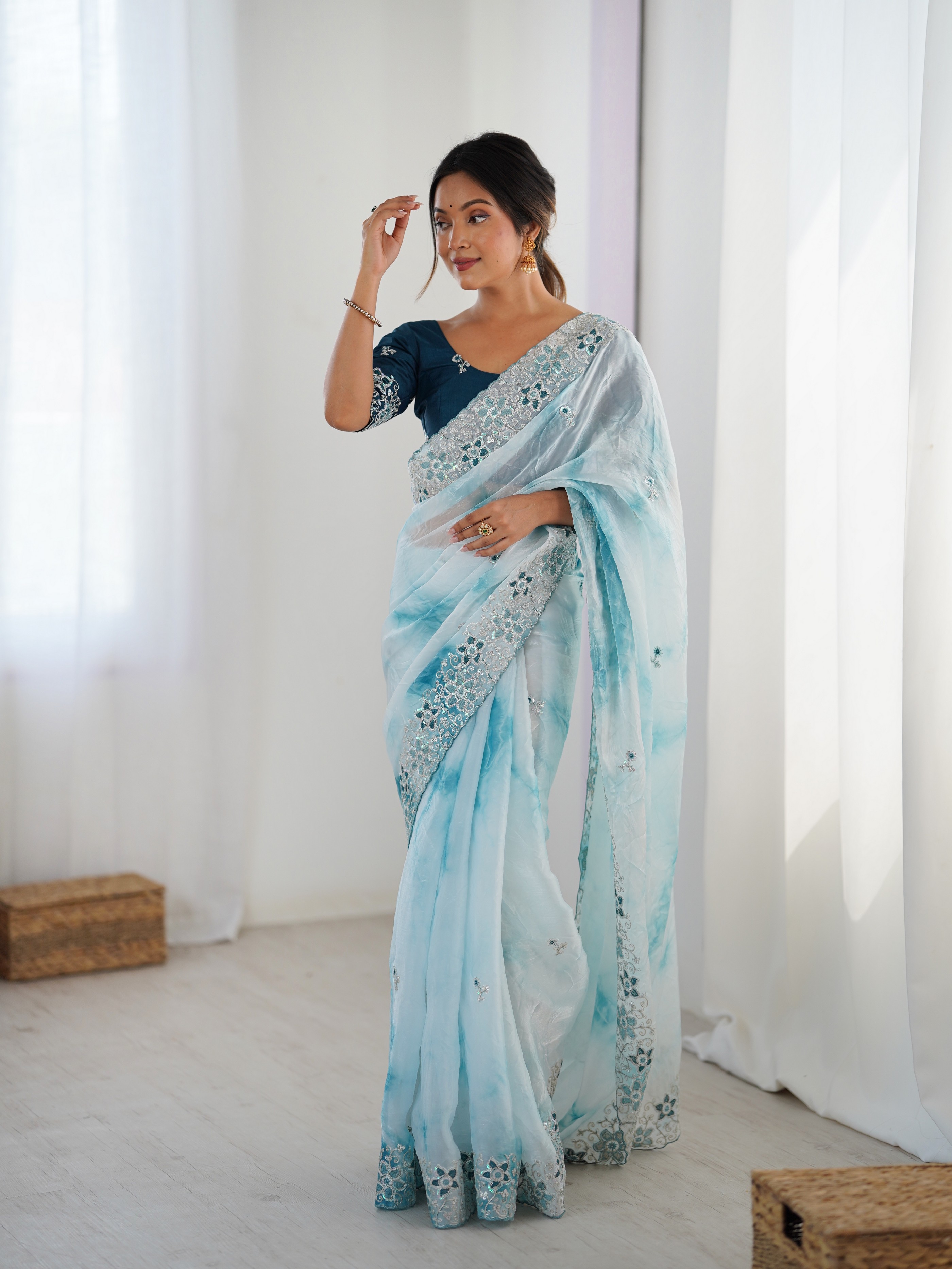 Sky Blue color Fendy Fabric Stylish Girlie Saree
