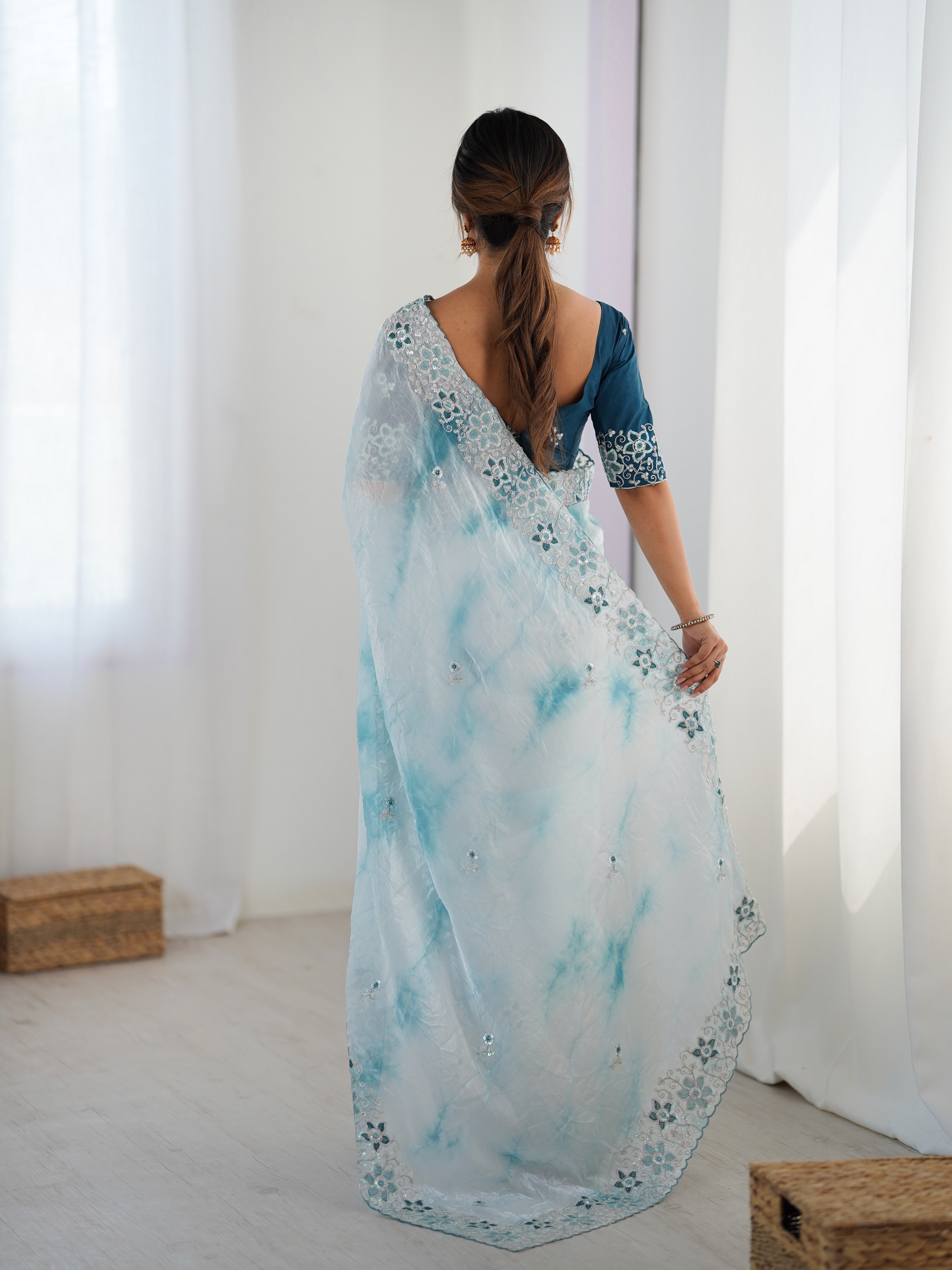 Made using high-quality fabrics such as silk, soft silk, georgette, organza, chiffon, crepe, linen, cotton blends ...etc .