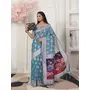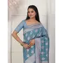 Sky Blue Color Linen Cotton Fabric Ceremonial Looks Partywear Saree