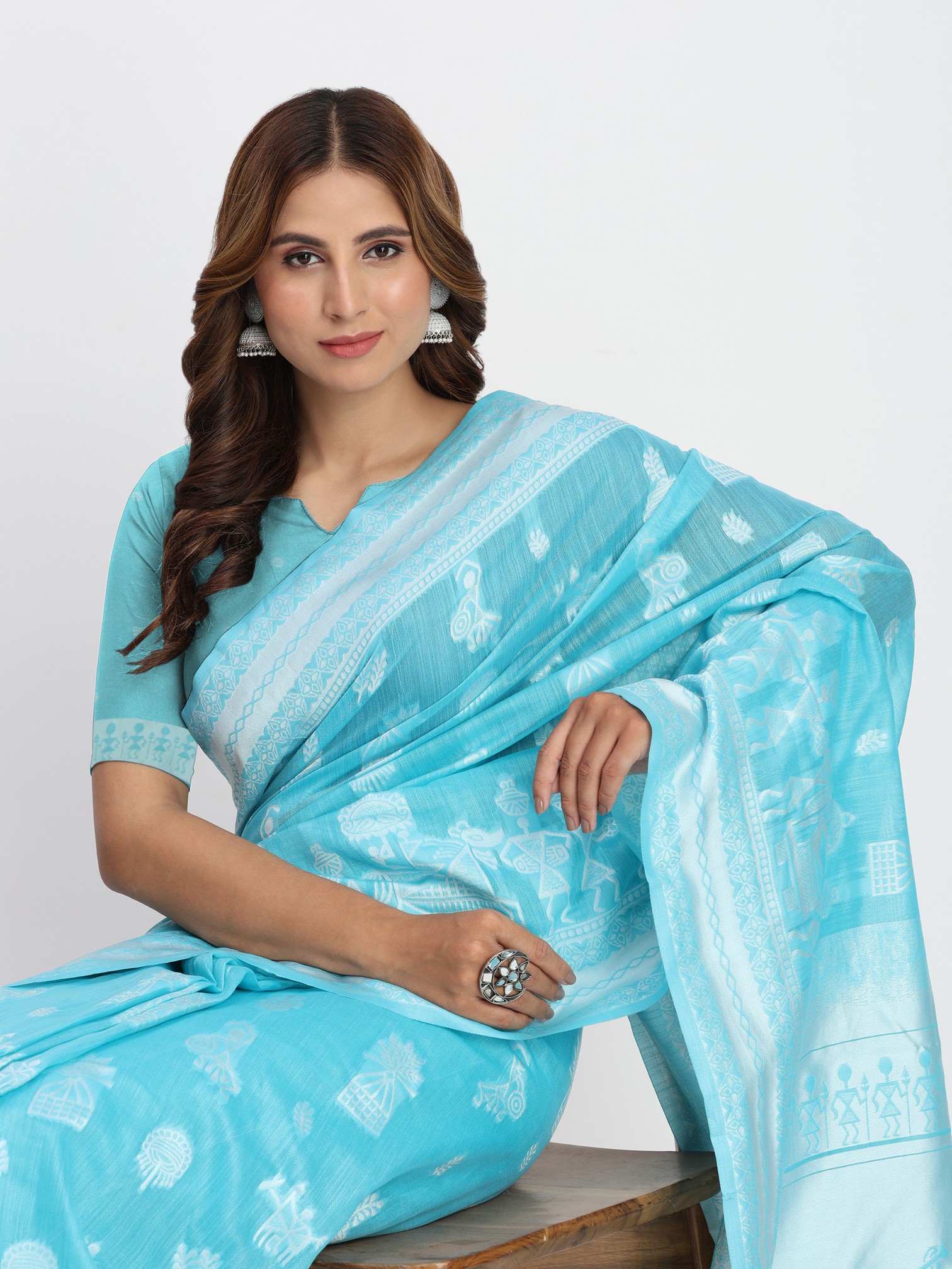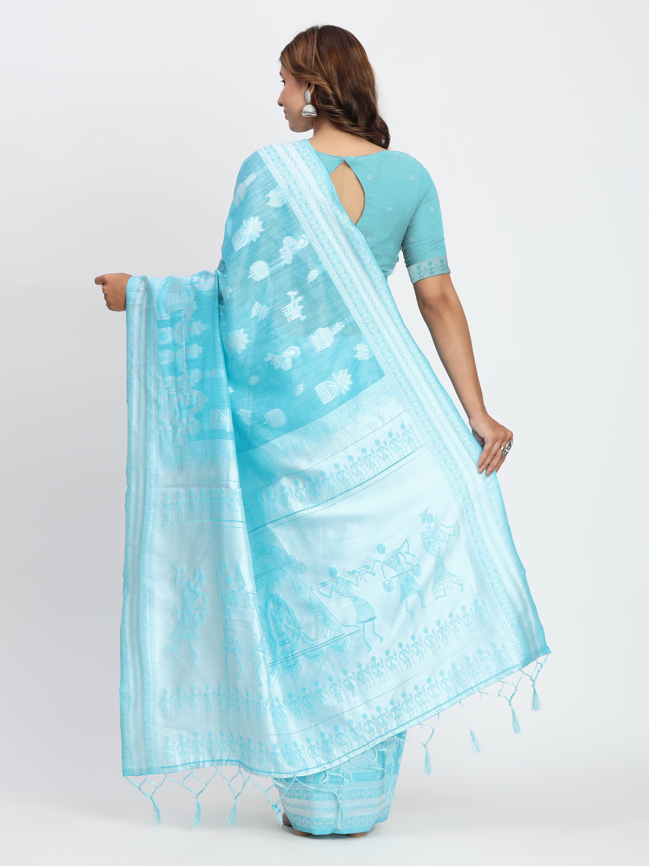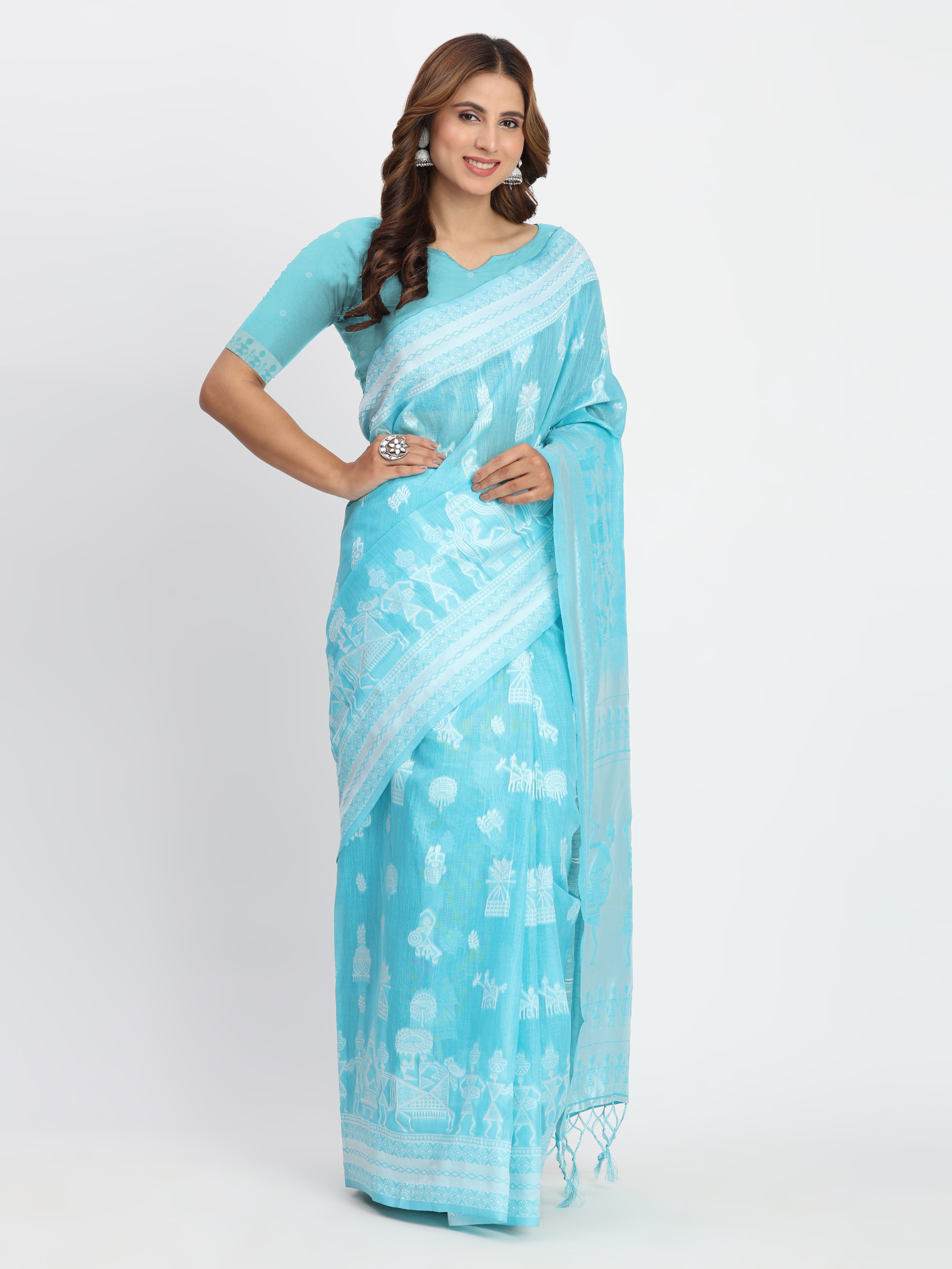 Sky Blue Color Linen Cotton Woven Designer Graceful Ethnic Saree