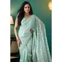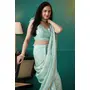 Sky Blue Color Organza Fabric Solid Designer Foil Printed Saree