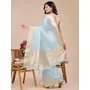 Sky Blue Color Organza Fabric Wevon Designer Traditonal Wear Saree