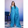 Sky Blue Color Satin Fabric Designer Ready To Wear Ceremonial Saree