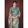 Sky Blue Color Smart Partywear Habotai Silk Flower Print with Foil Print Saree