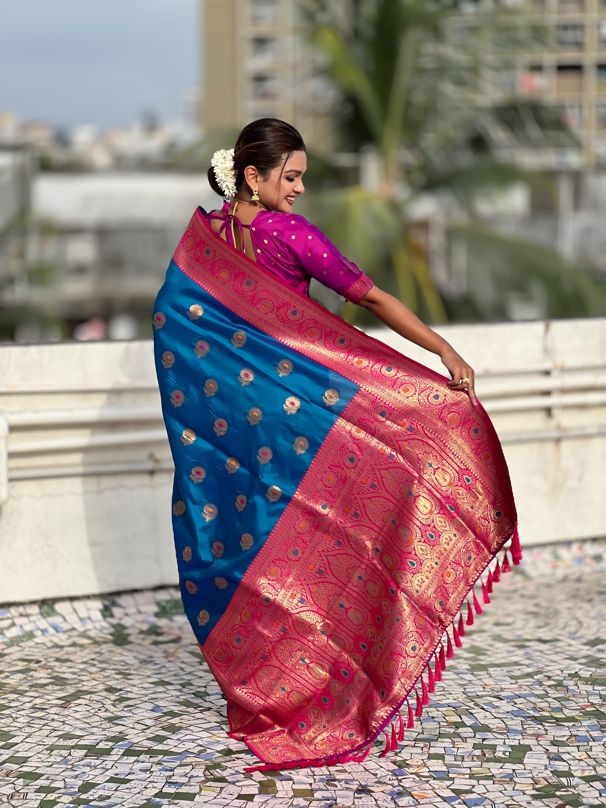 Sky Blue Color Soft Silk Fabric Wevon Meenakari Designer Trending Partywear Saree