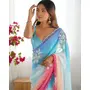 Sky Blue Padding Color Georgette Fabric Sequins Embroidered Saree