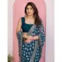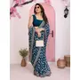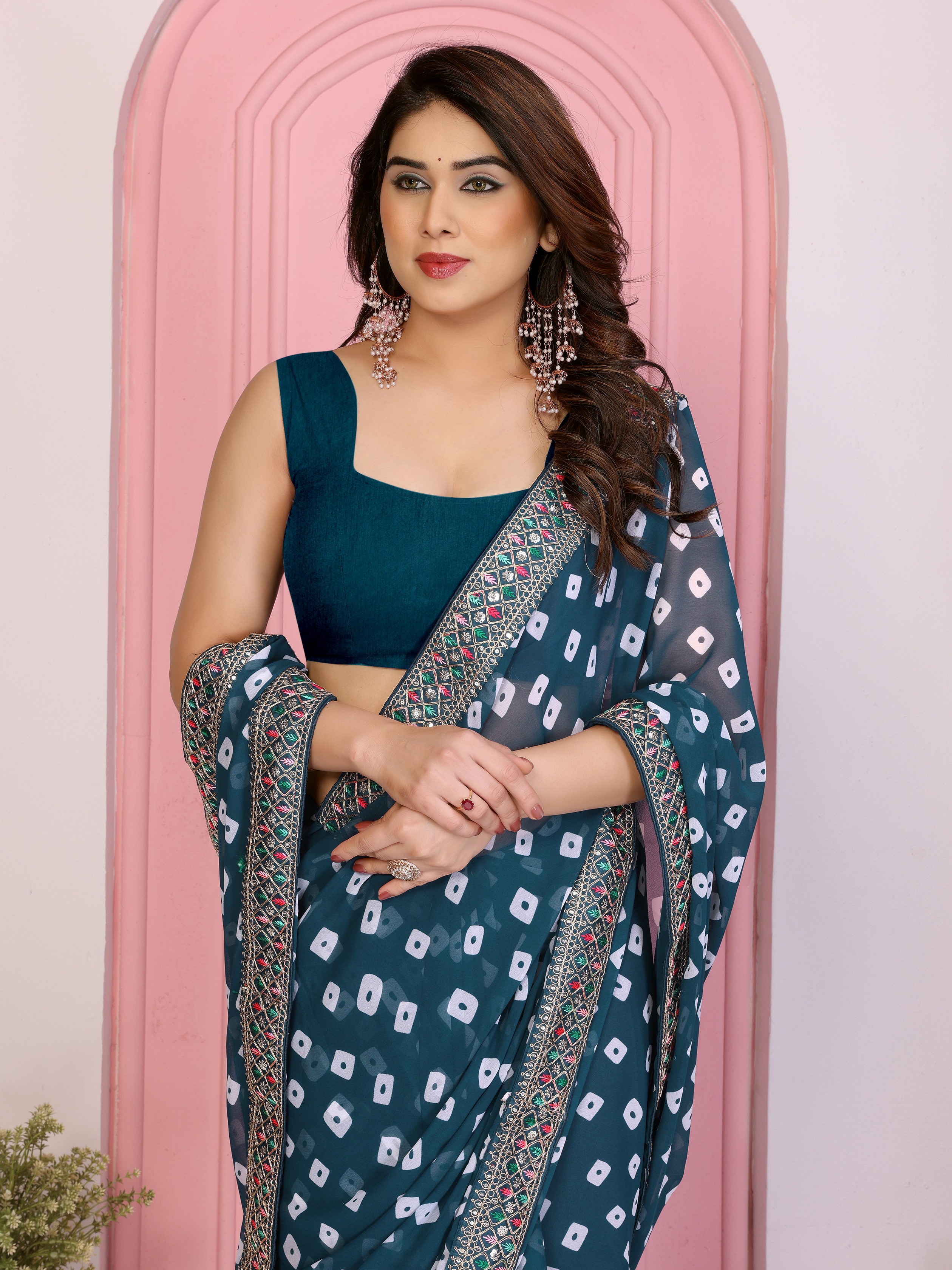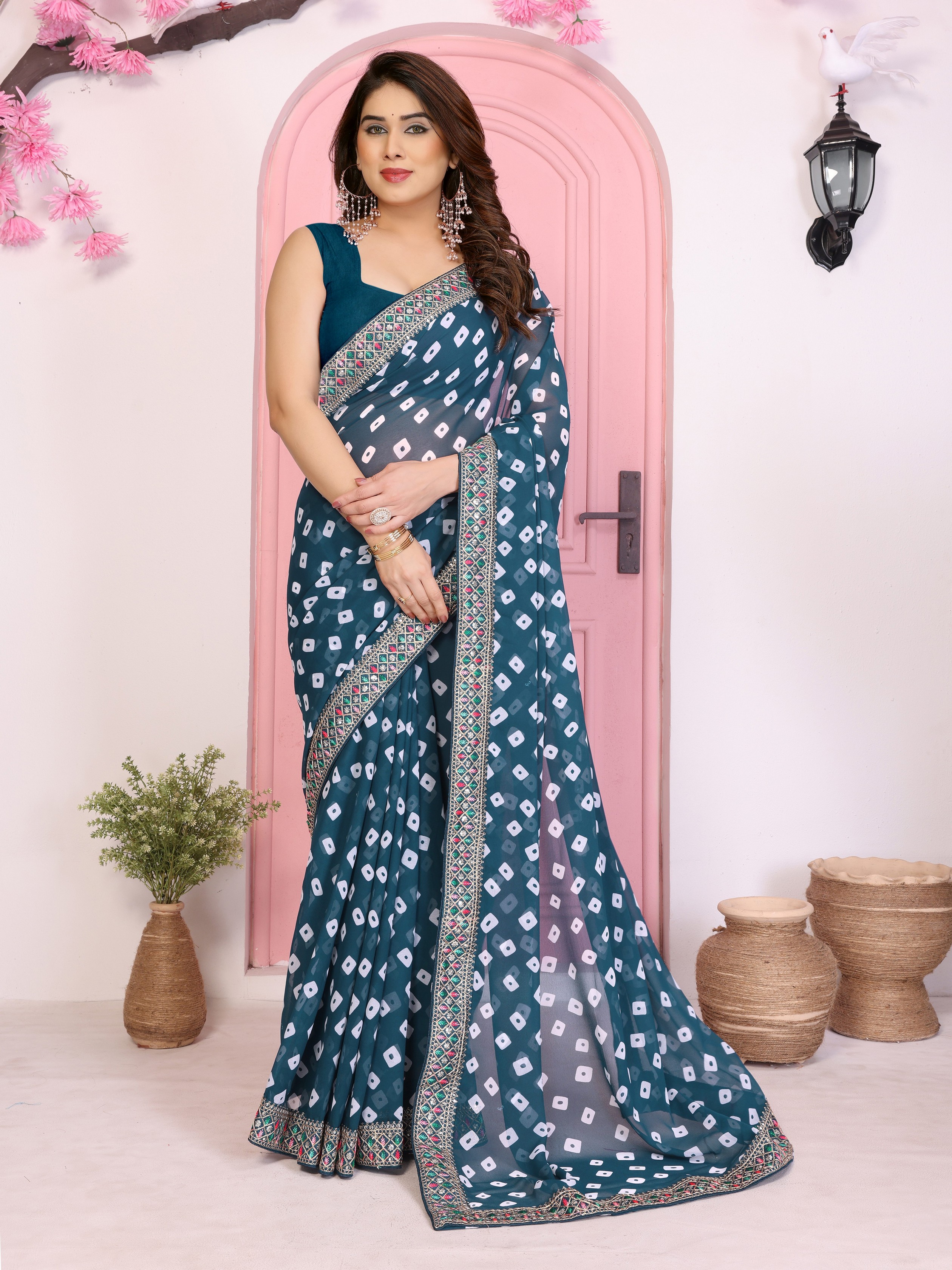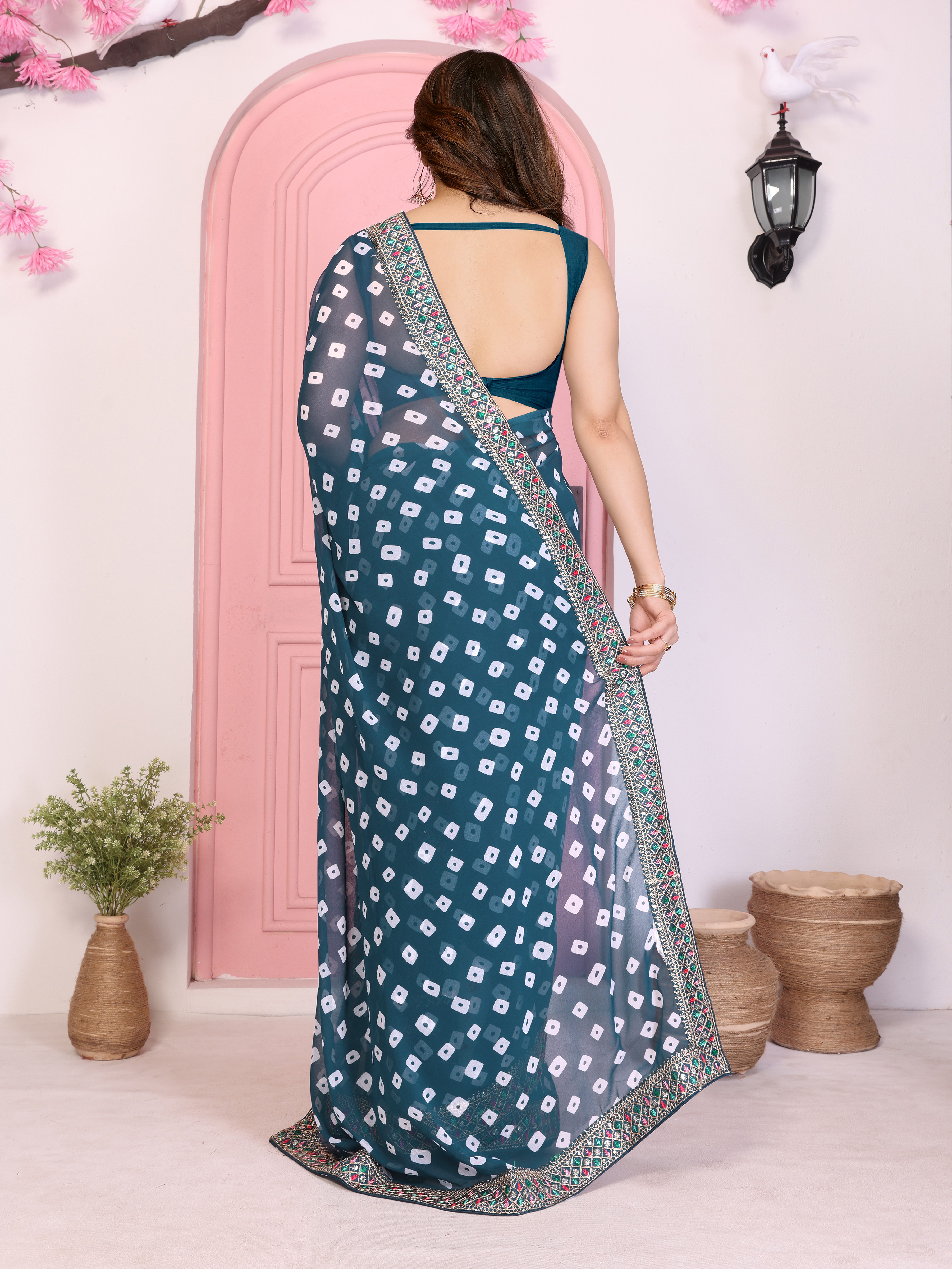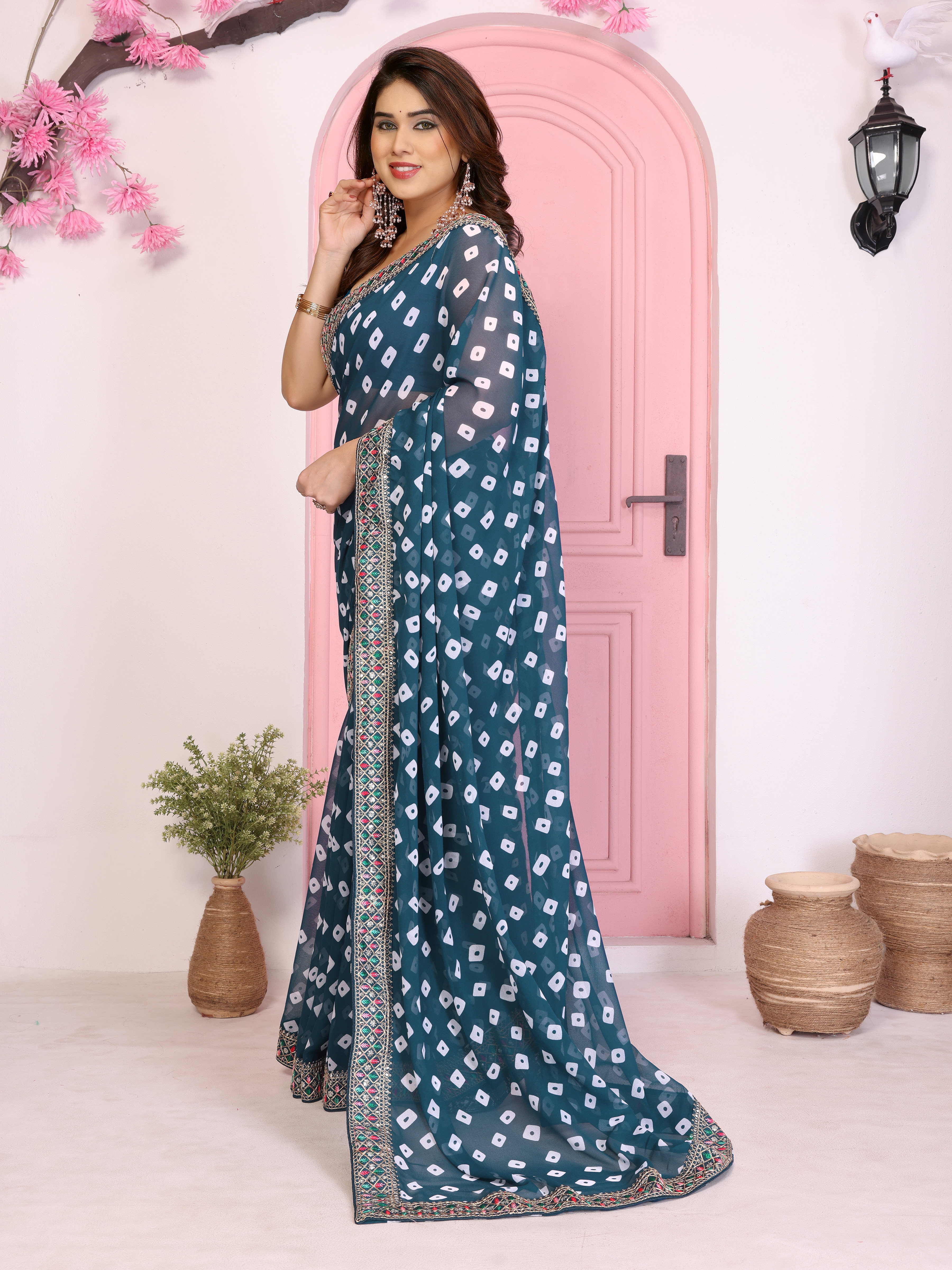 Teal Blue Color Georgette Fabric Embroidered Partywear Saree