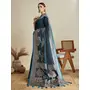Teal Blue Color Satin Silk Fabric Woven Designer Partywear Saree