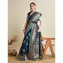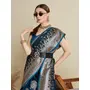Teal Blue Color Satin Silk Wevon Jari Designer Trendy Festive Saree
