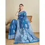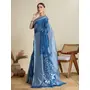Teal Blue Color Soft Silk Fabric Wevon Flower Designer Stylish Partywear Saree