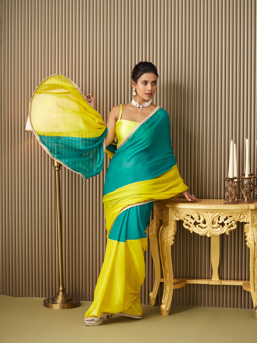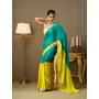 Teal Color Chiffon fabric Motiwork Lace Colorblocked Ceremonial Saree