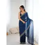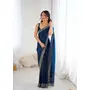 Teal Color Fendy Satin Fabric Zarkan Hand Work Designer Bollywood Style Saree