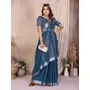Teal Color Linen Cotton Fabric Woven Silver Jari Designer Ceremonial Saree