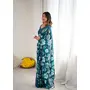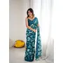Teal Color Moss Satin Patta Stylish Partywear Saree