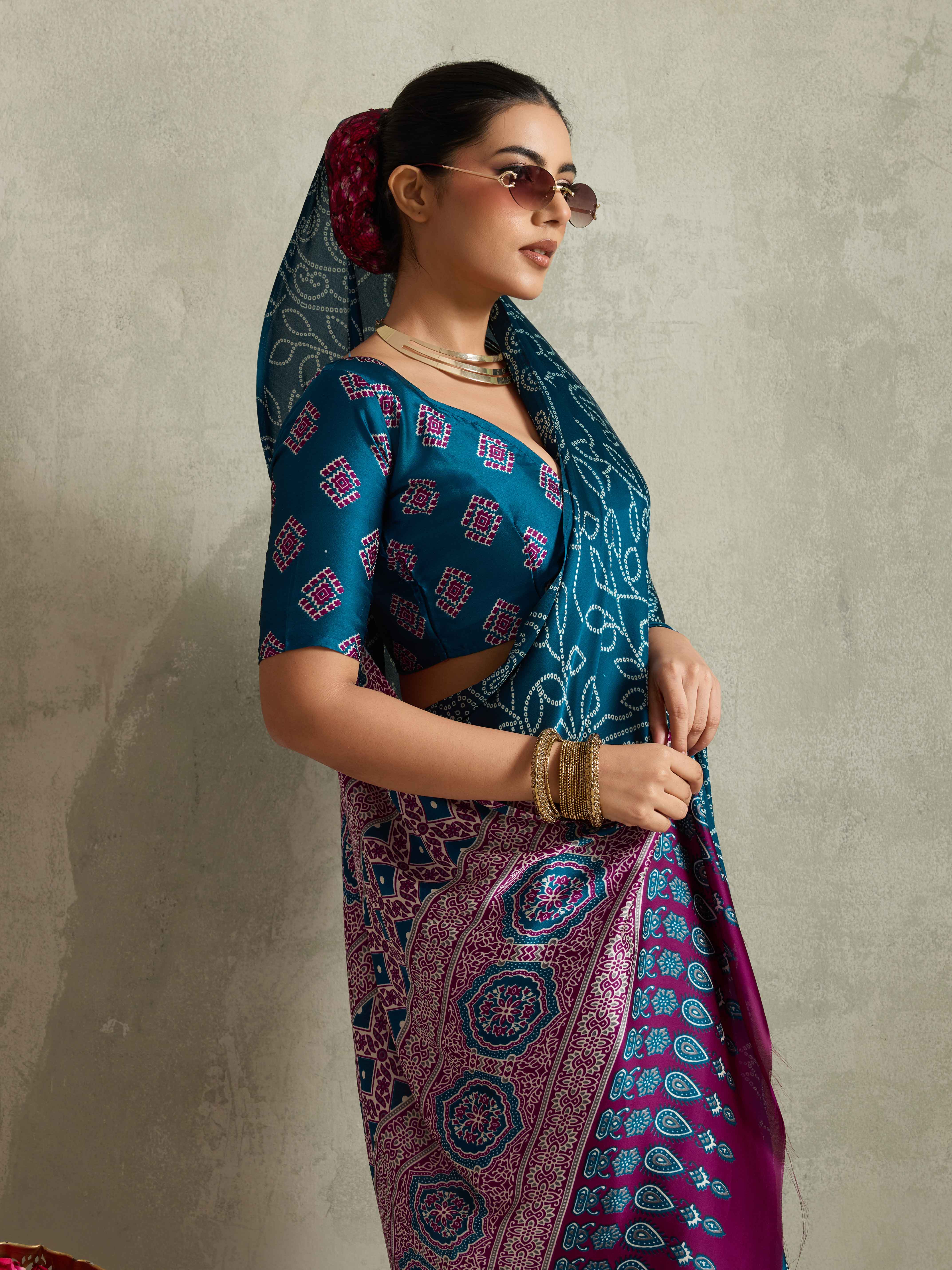 Looking These Traditinol Party Wear Saree in Fine Colored.These Saree Are Satin Silk And Blouse is Fabricated On Satin Silk Pair.Its Beautified With Designer Bandhani Printed.