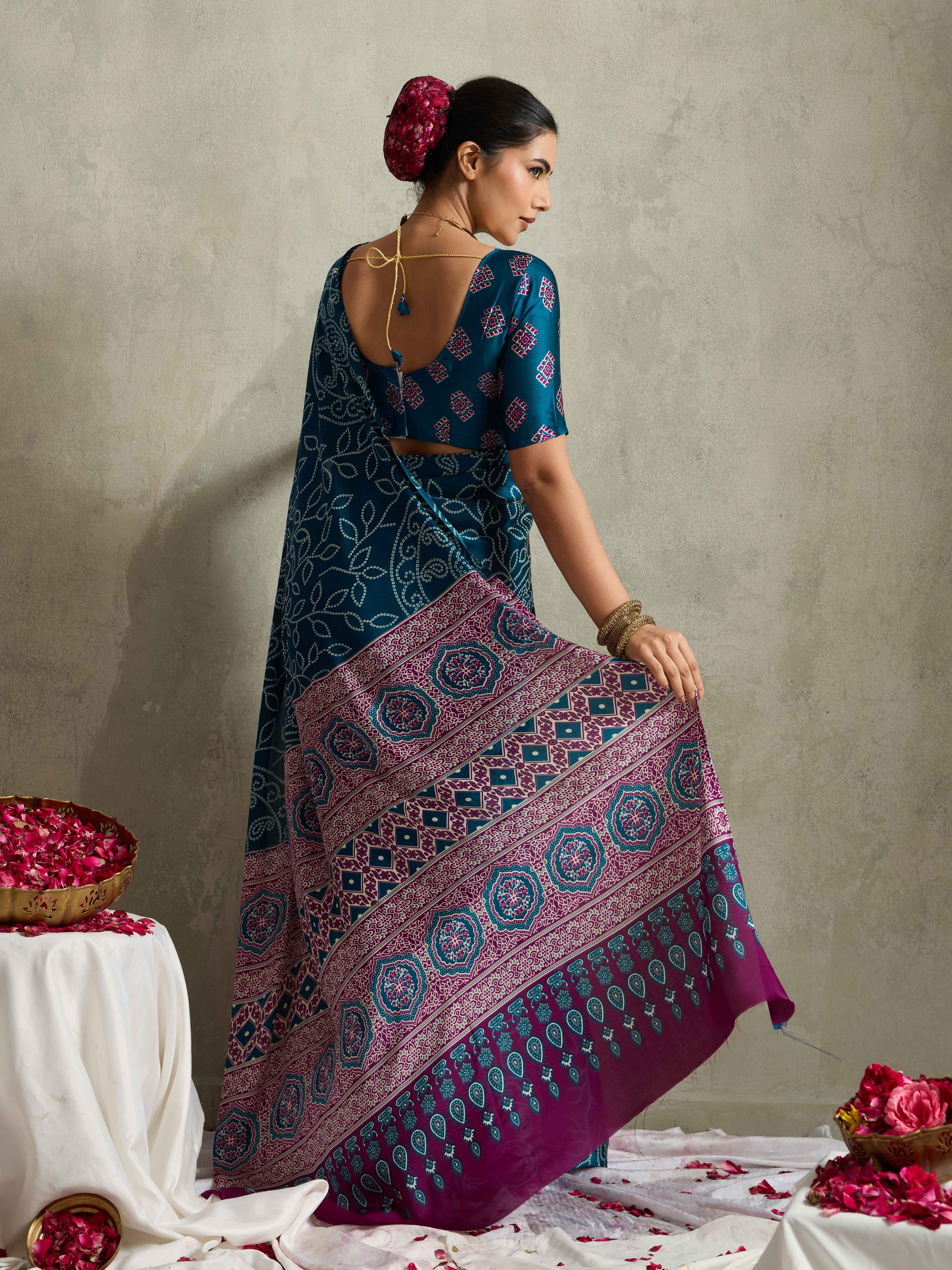 Teal Color Rich Looks Designer Bandhani Printed Elegant Festive Saree