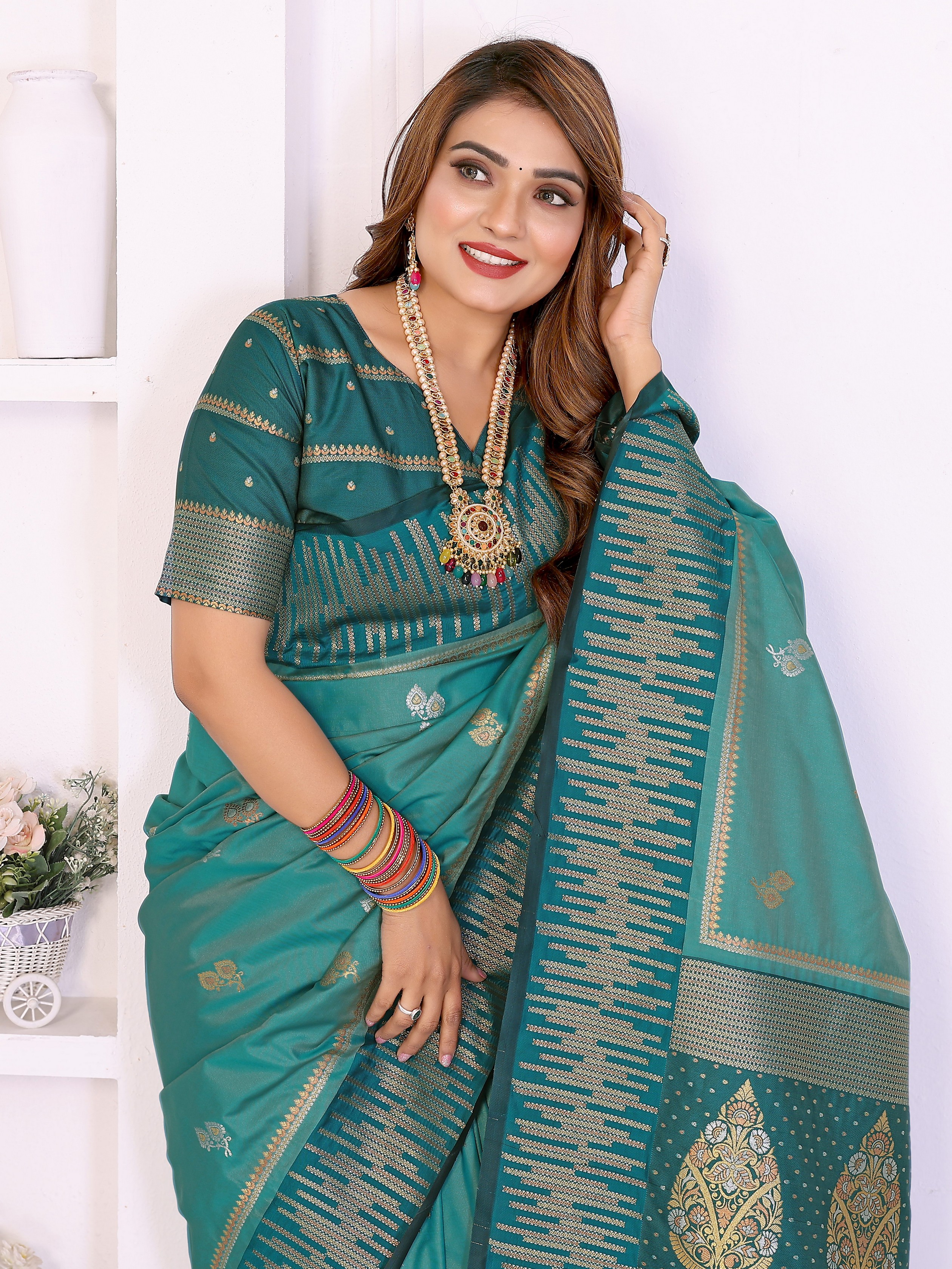 Teal Color South Soft Silk Fabric Woven Rich Pallu Designer Ceremonial Saree