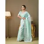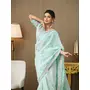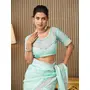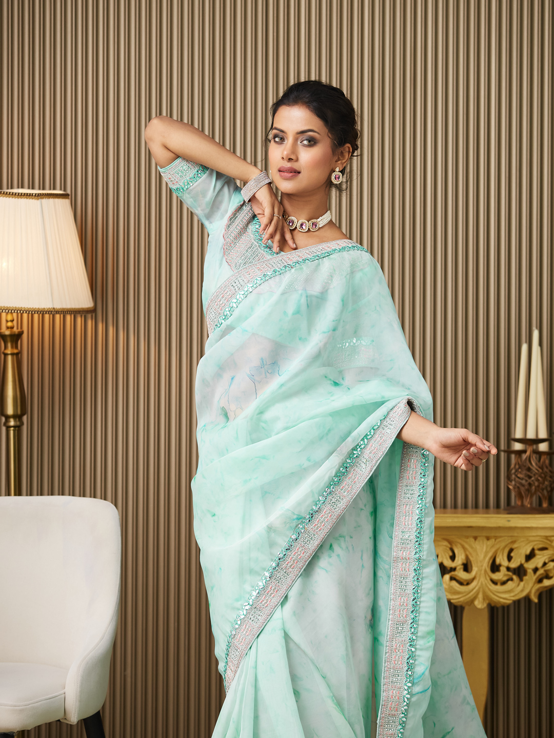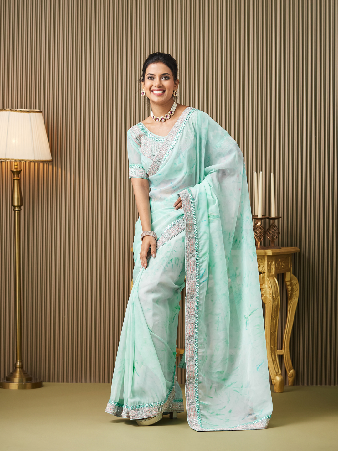 Turquoise Blue Color Organza fabric Embroidered Embellished Work Ceremonial Saree