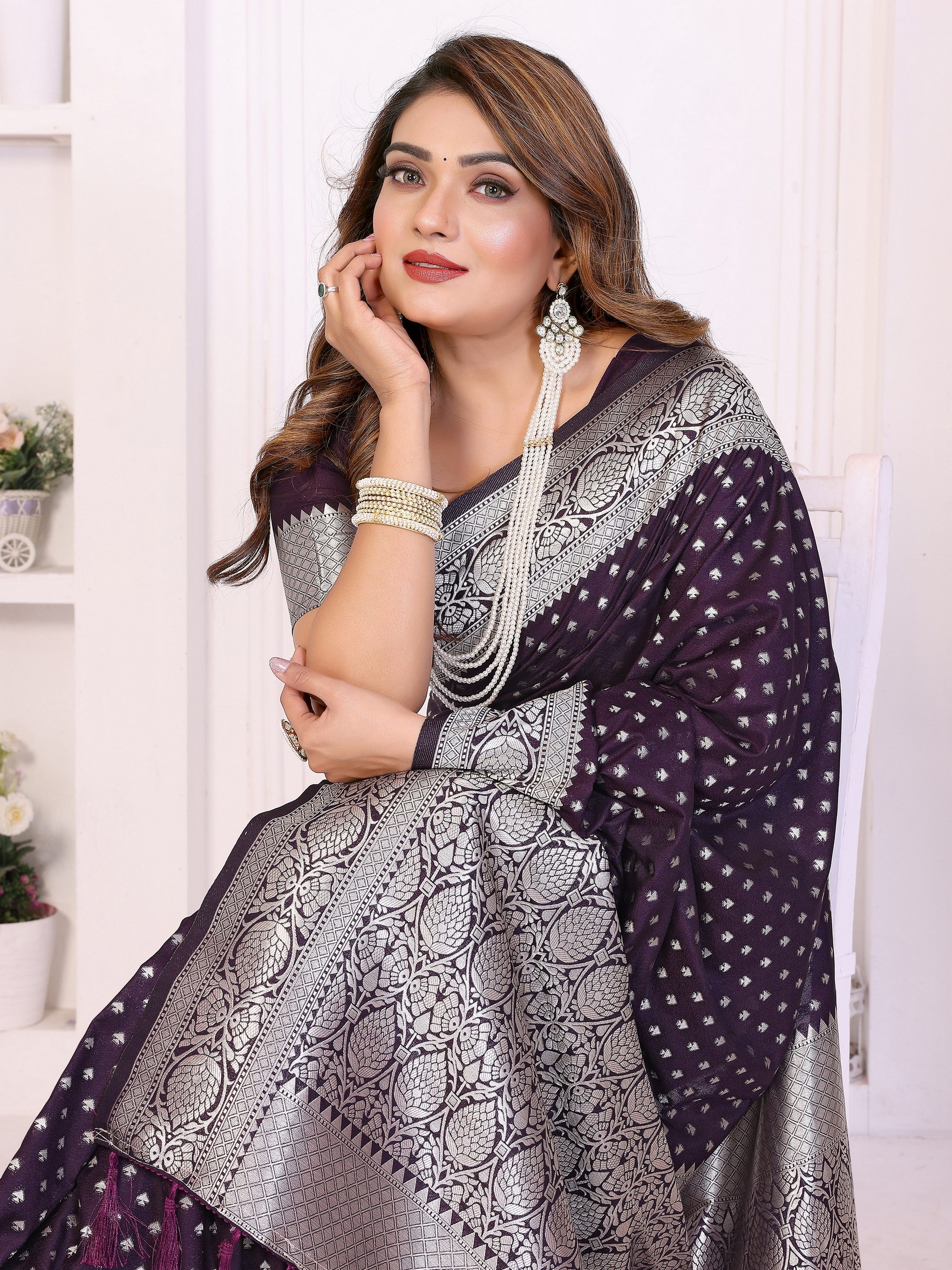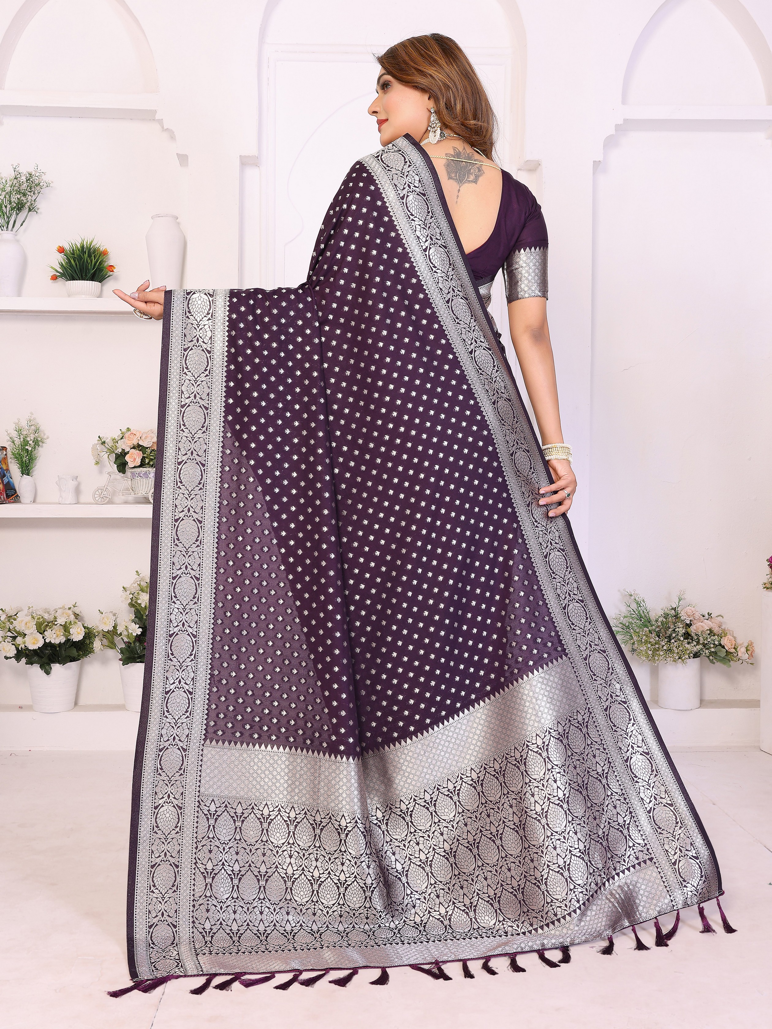 Violet Color Georgette Fabric Woven Rich Jari Butty Designer Traditional Ceremonial Saree