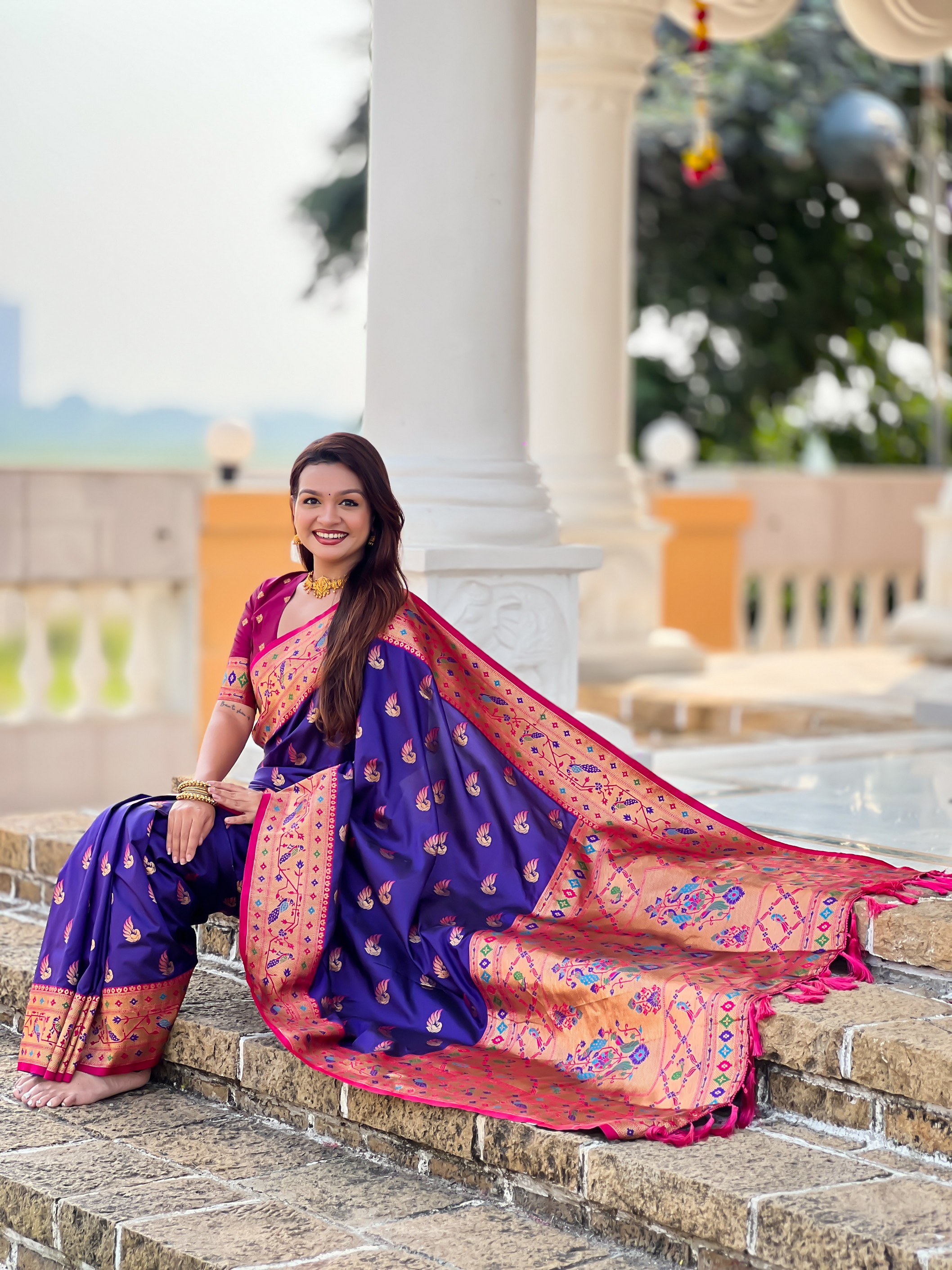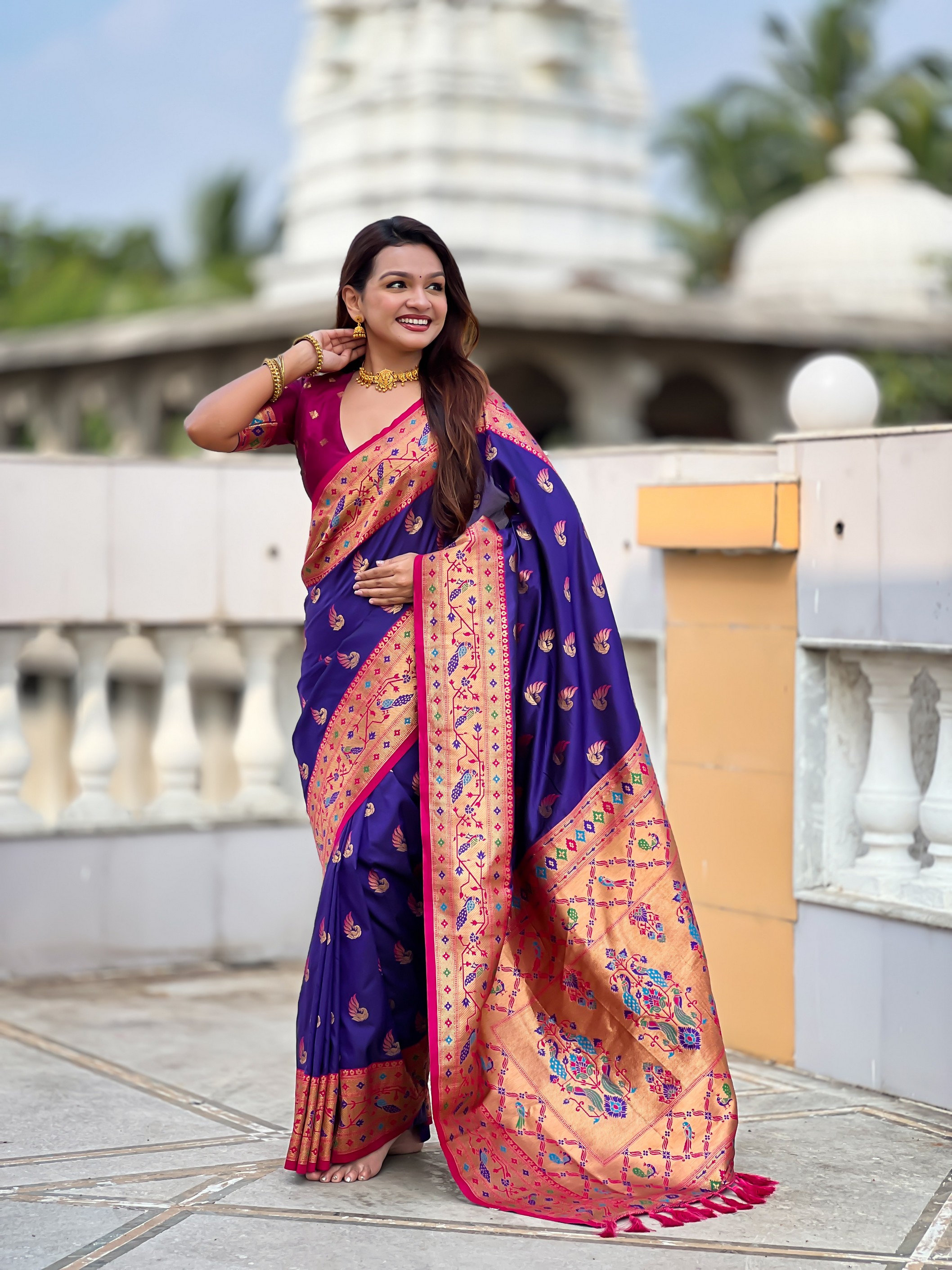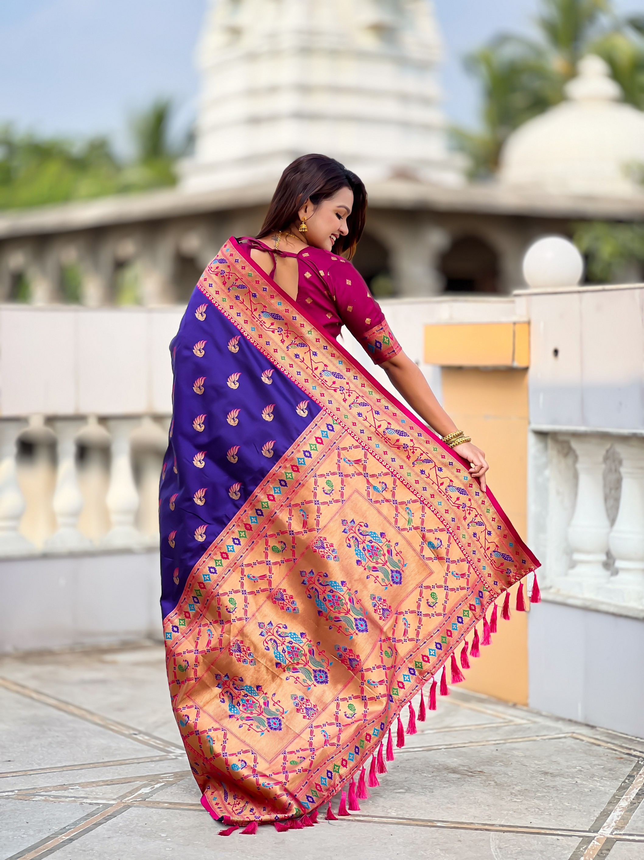 Violet Color Paithani Silk Woven Meenakari Jacquard Designer Saree