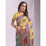 Wevon Thread Designer Yellow Color Linen Cotton Fabric Traditional Rich Looks Saree