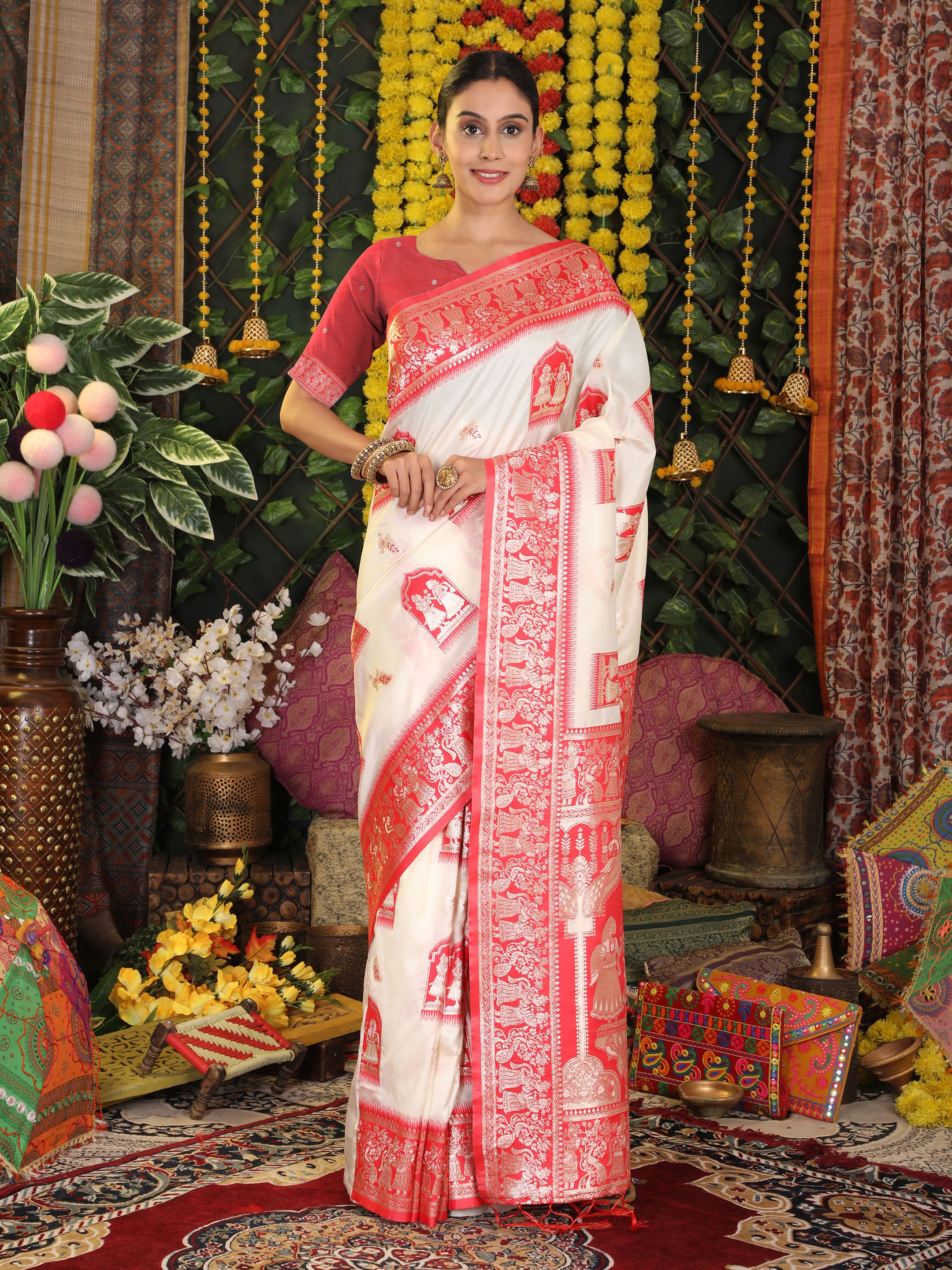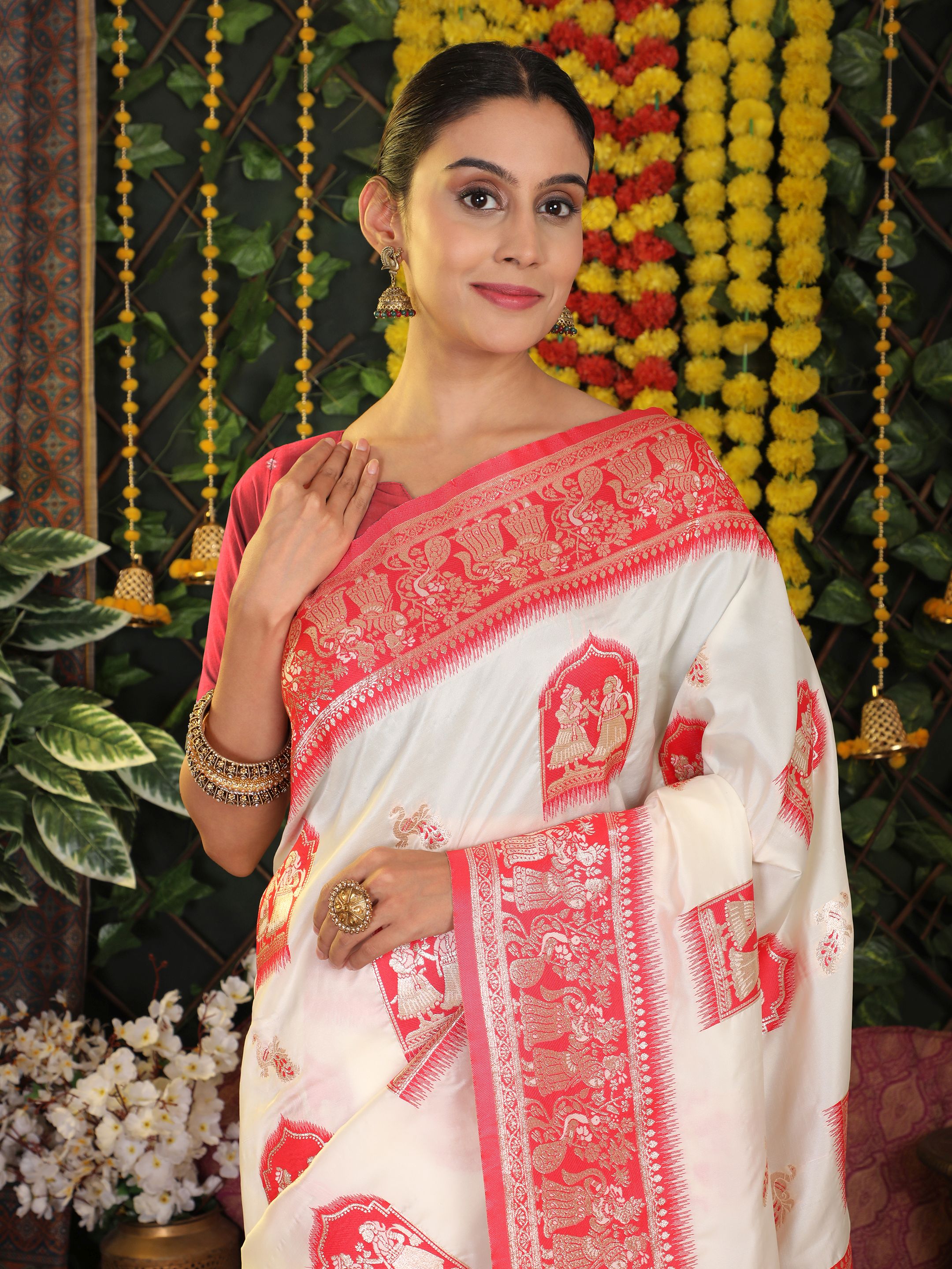 White Color Blended Silk Fabric Woven Jari Designer Saree