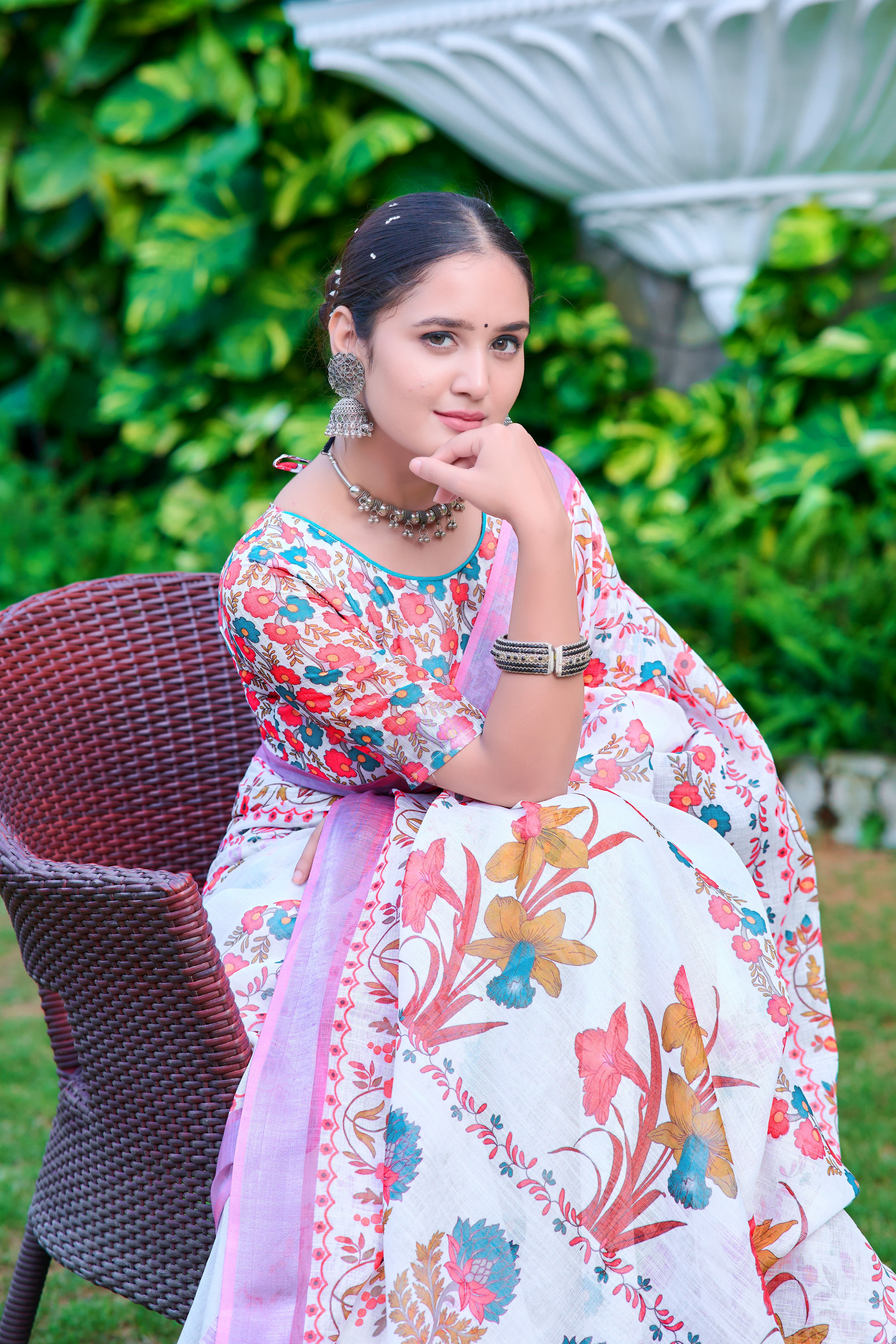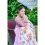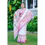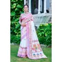 White Color Linen Cotton Fabric Designer Printed Ethnic Festive Saree