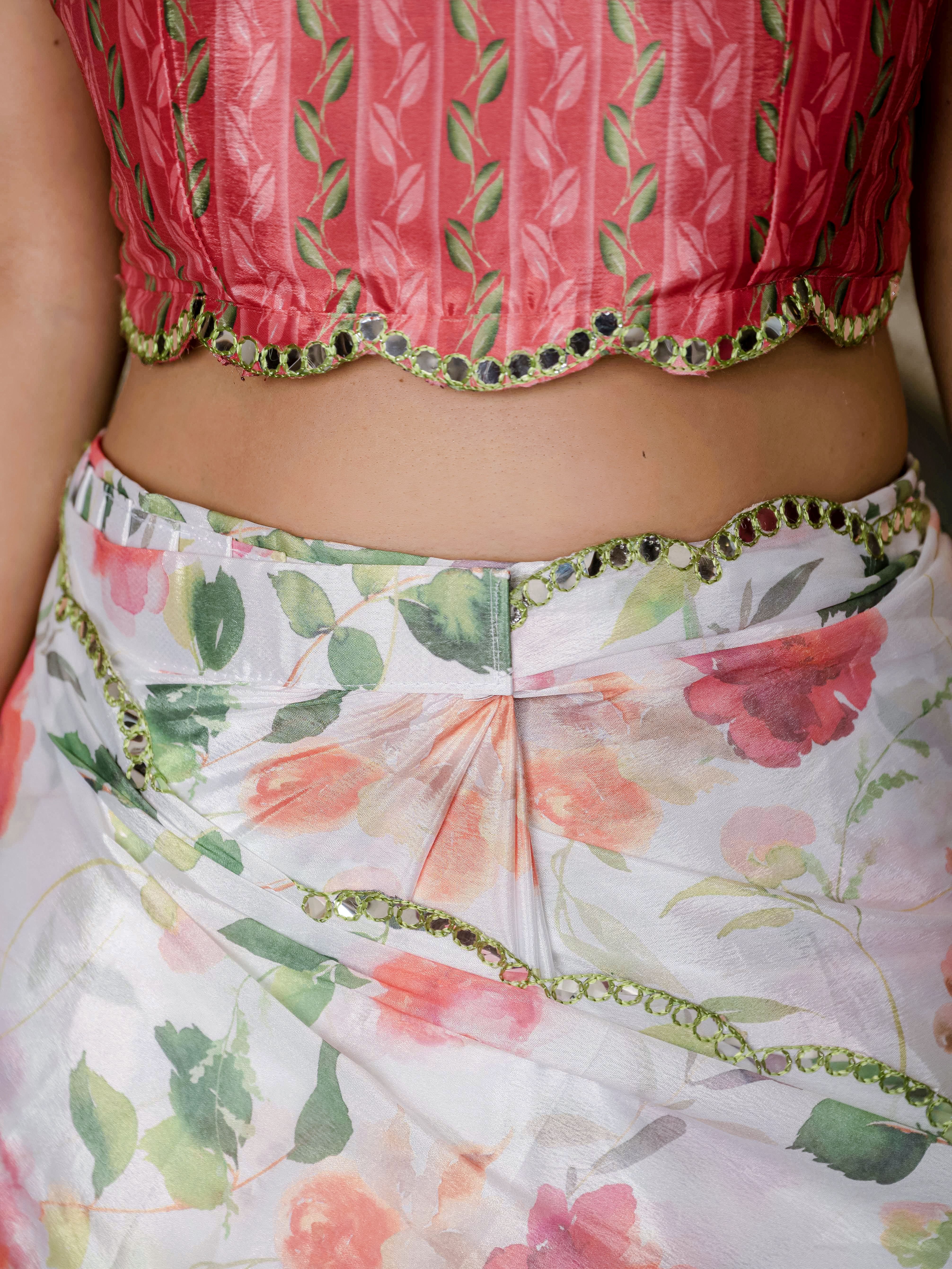 White Color Stylish Ready To Wear Chinon Fabric Partywear Saree