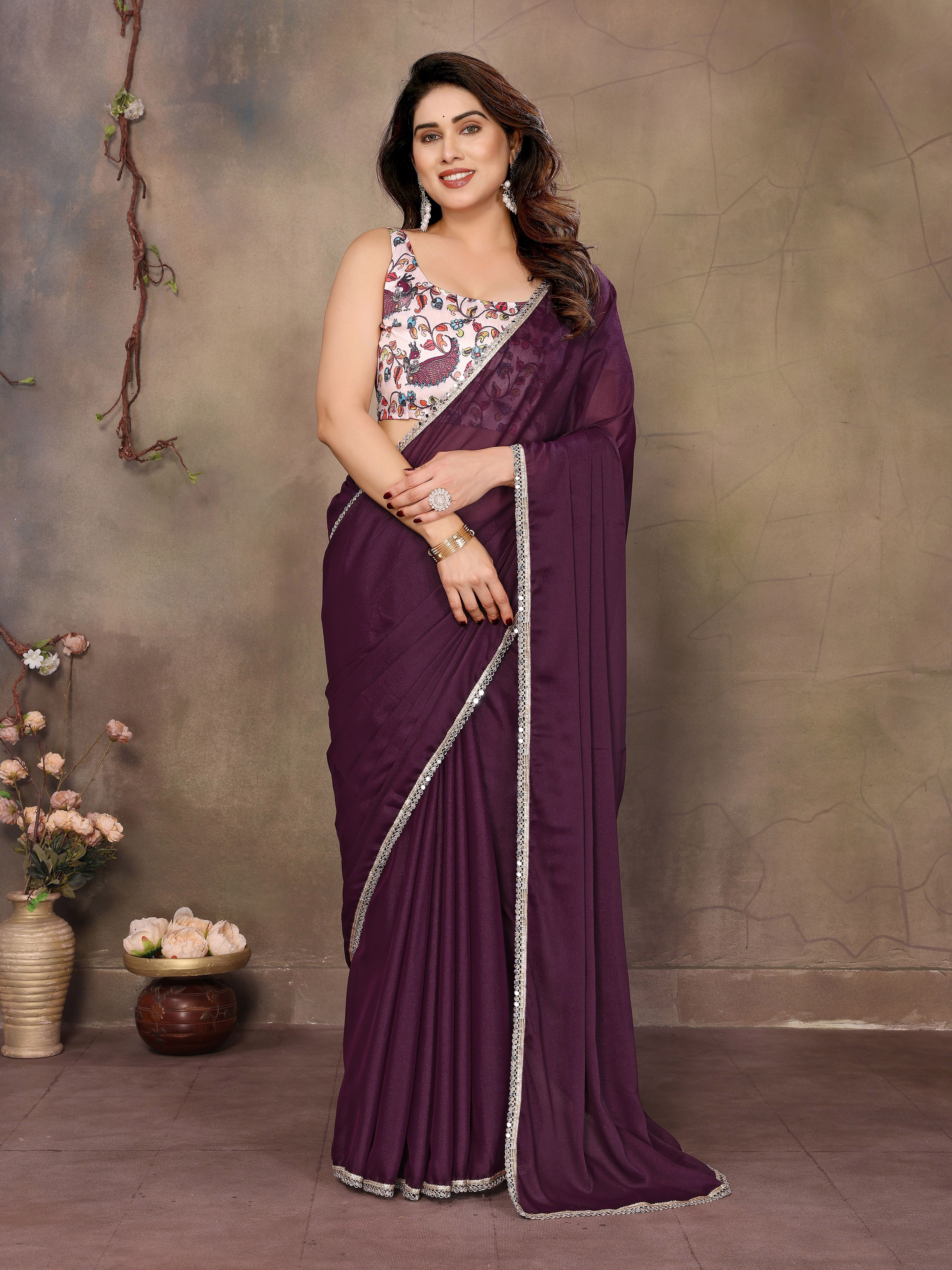 Wine Color Solid Color Fancy Ethnic Saree For Ceremonial Girlie Looks