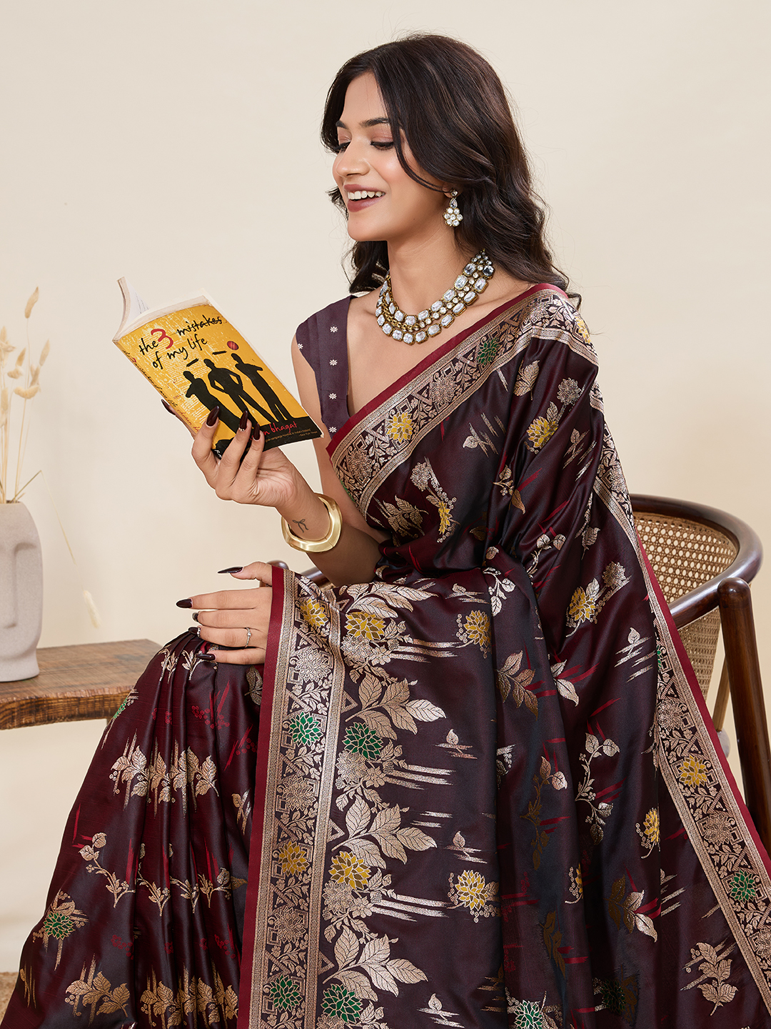 Wine Color Wevon Jari Meenakari Designer Ethnic Partywear Saree