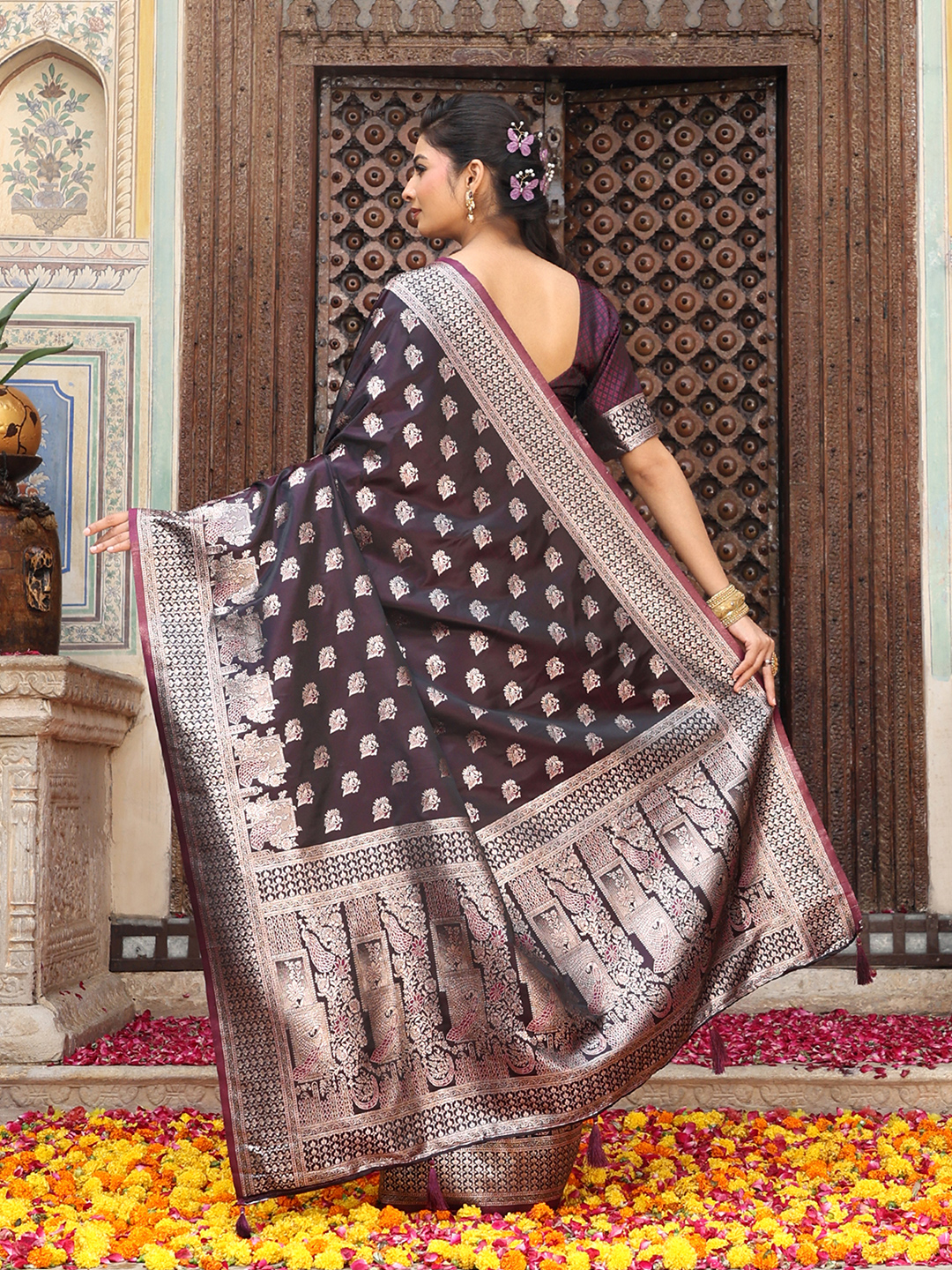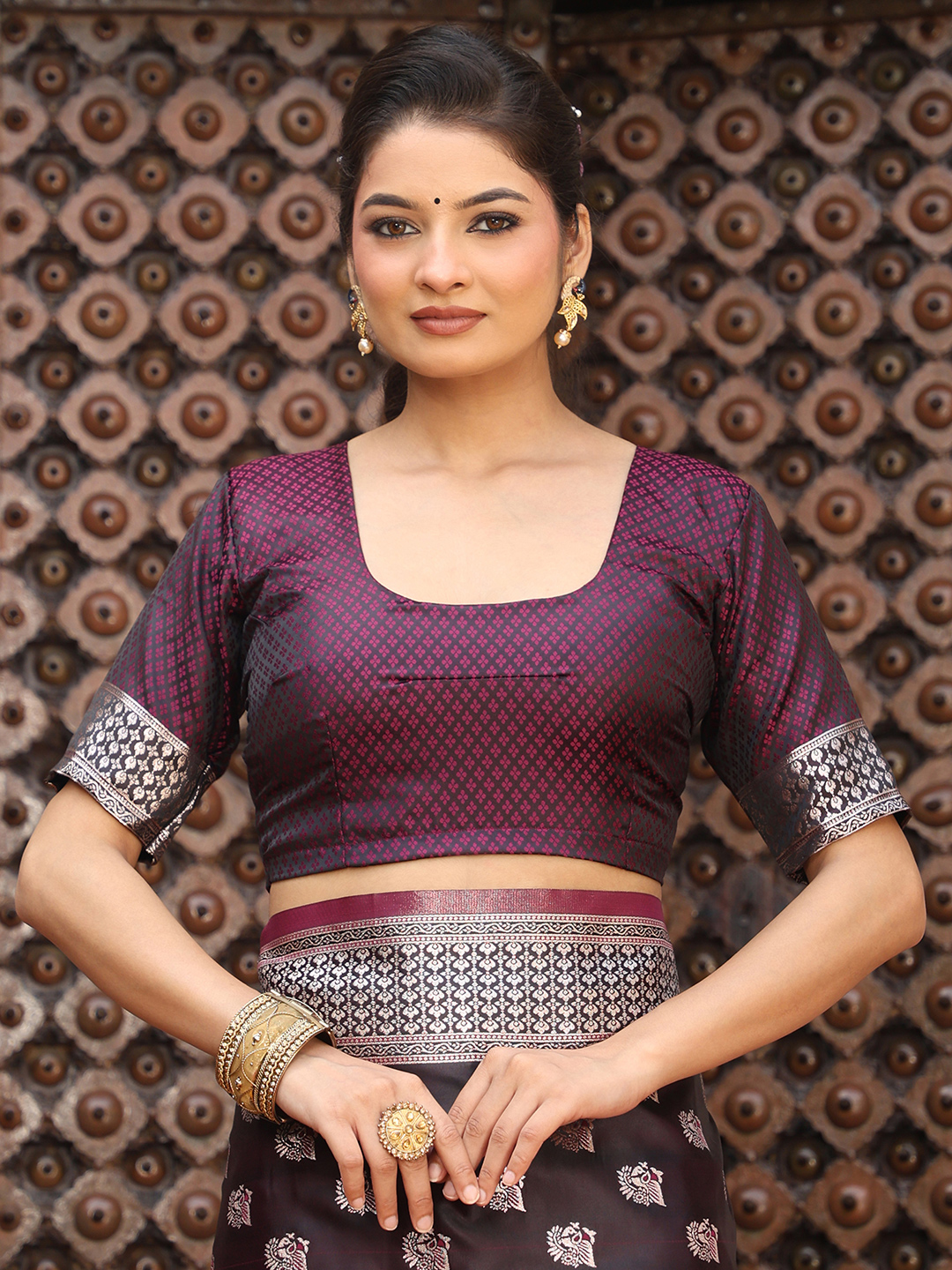 Wine Color Woven Designer Ethnic Silk Fabric Graceful Partywear Saree