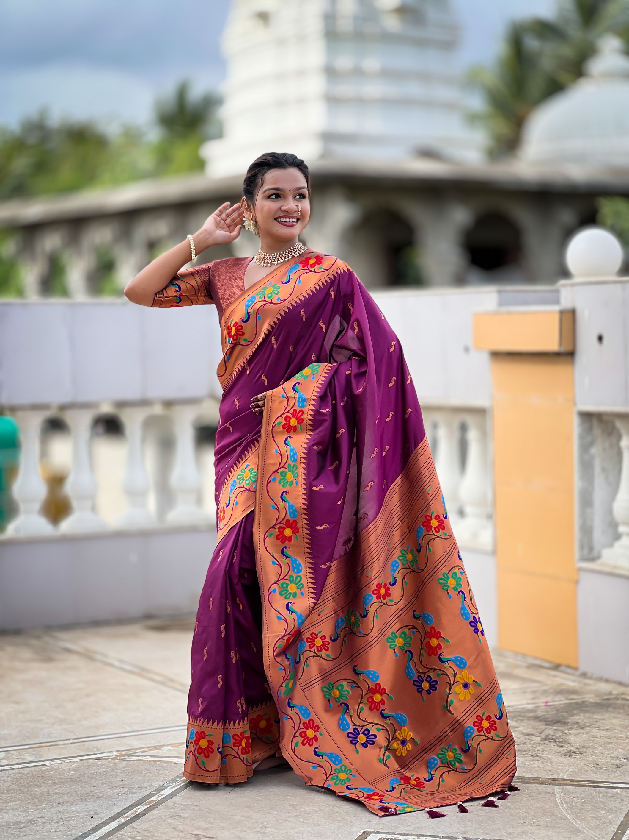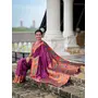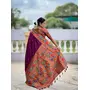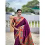 Wine Color Woven Meenakari Jacquard Designer Paithani Silk Fabric Ethnic Saree