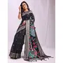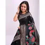 Woven Jacquard Designer Black Color Linen Cotton Fabric Ceremonial Saree
