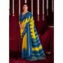Yellow & Blue Color Ikkat Silk Fabric Designer Zig Zag Printed Traditional Party Looks Saree