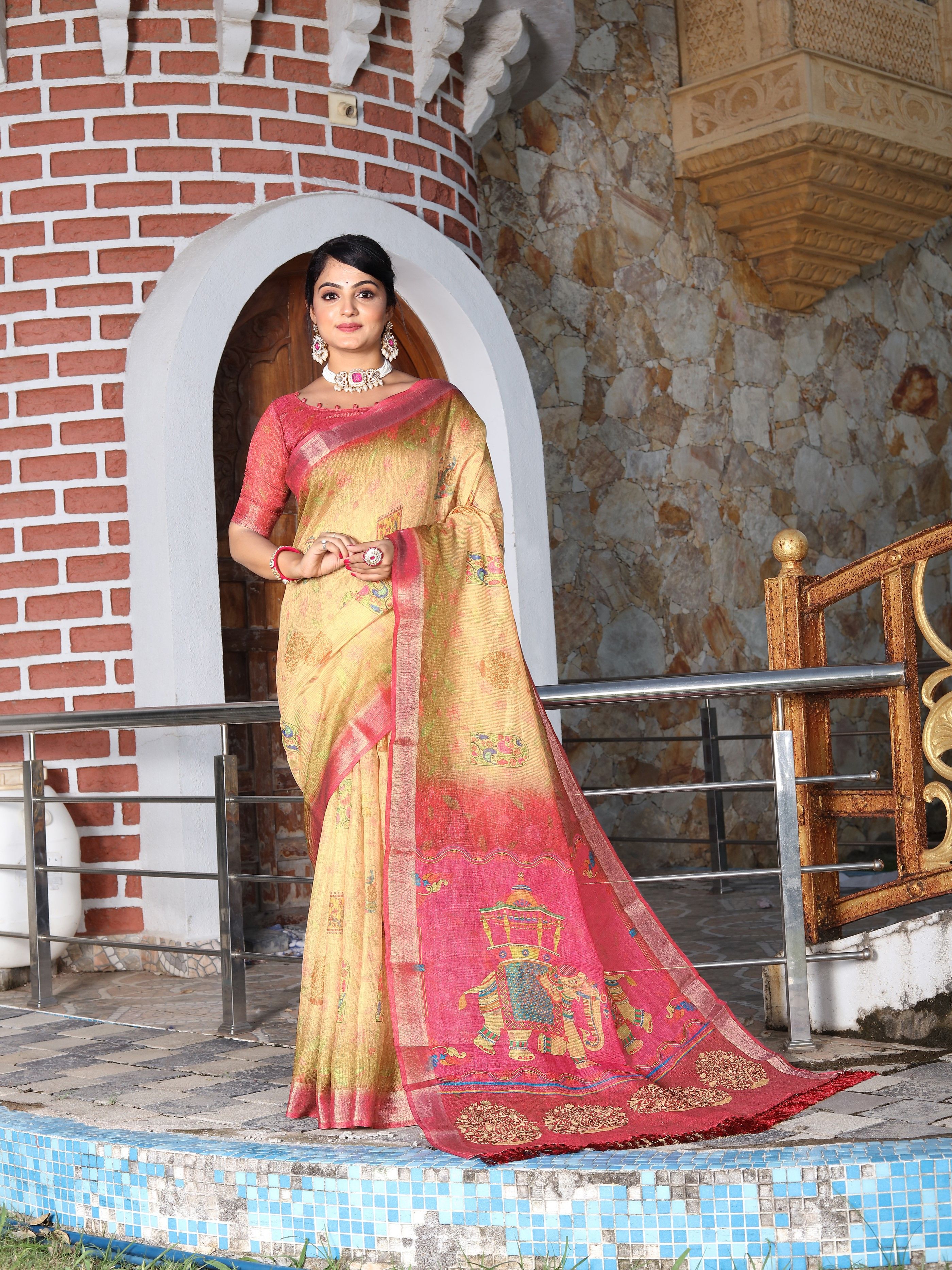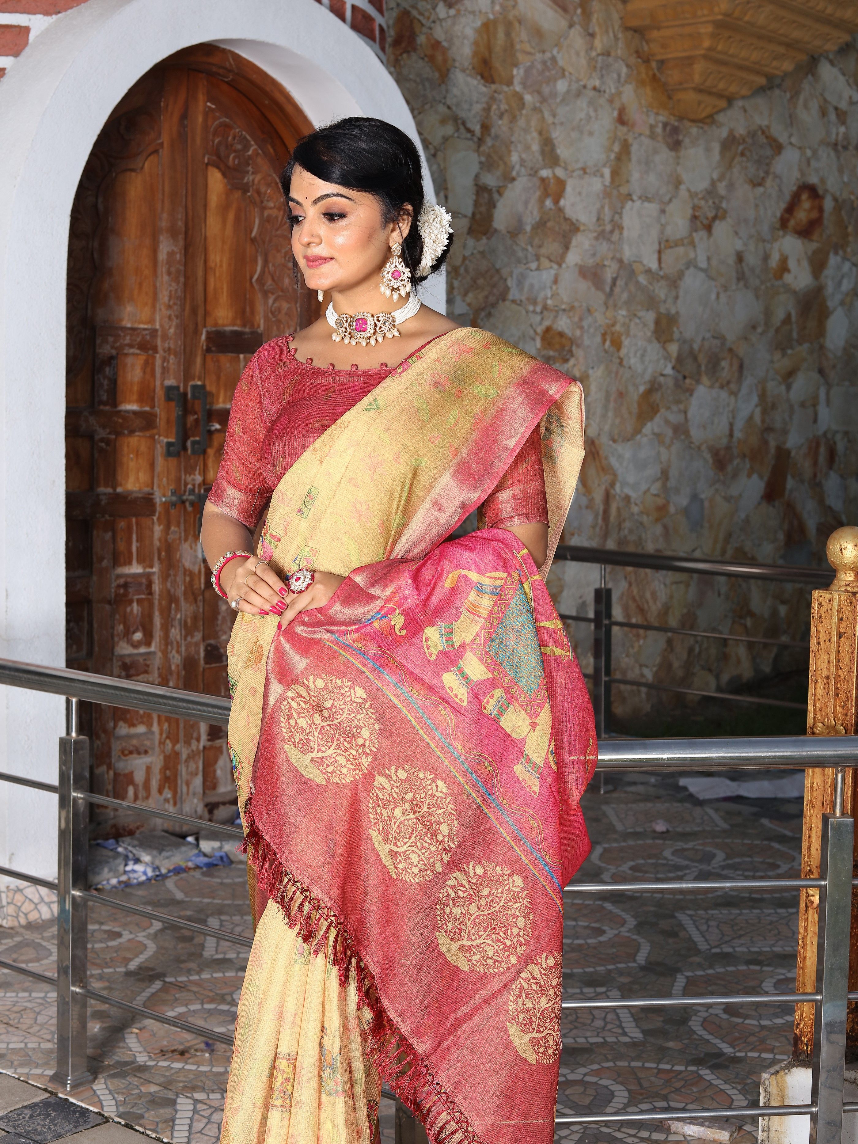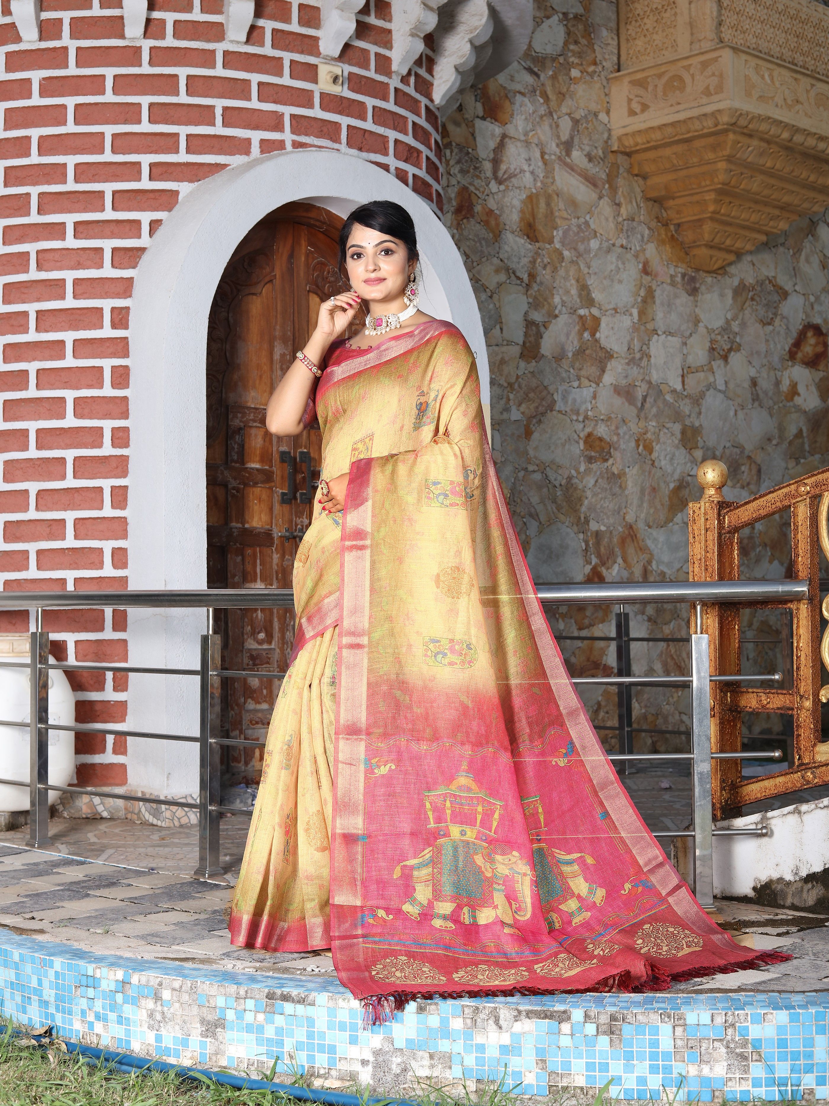 Made using high-quality fabrics such as silk, soft silk, georgette, organza, chiffon, crepe, linen, cotton blends ...etc .