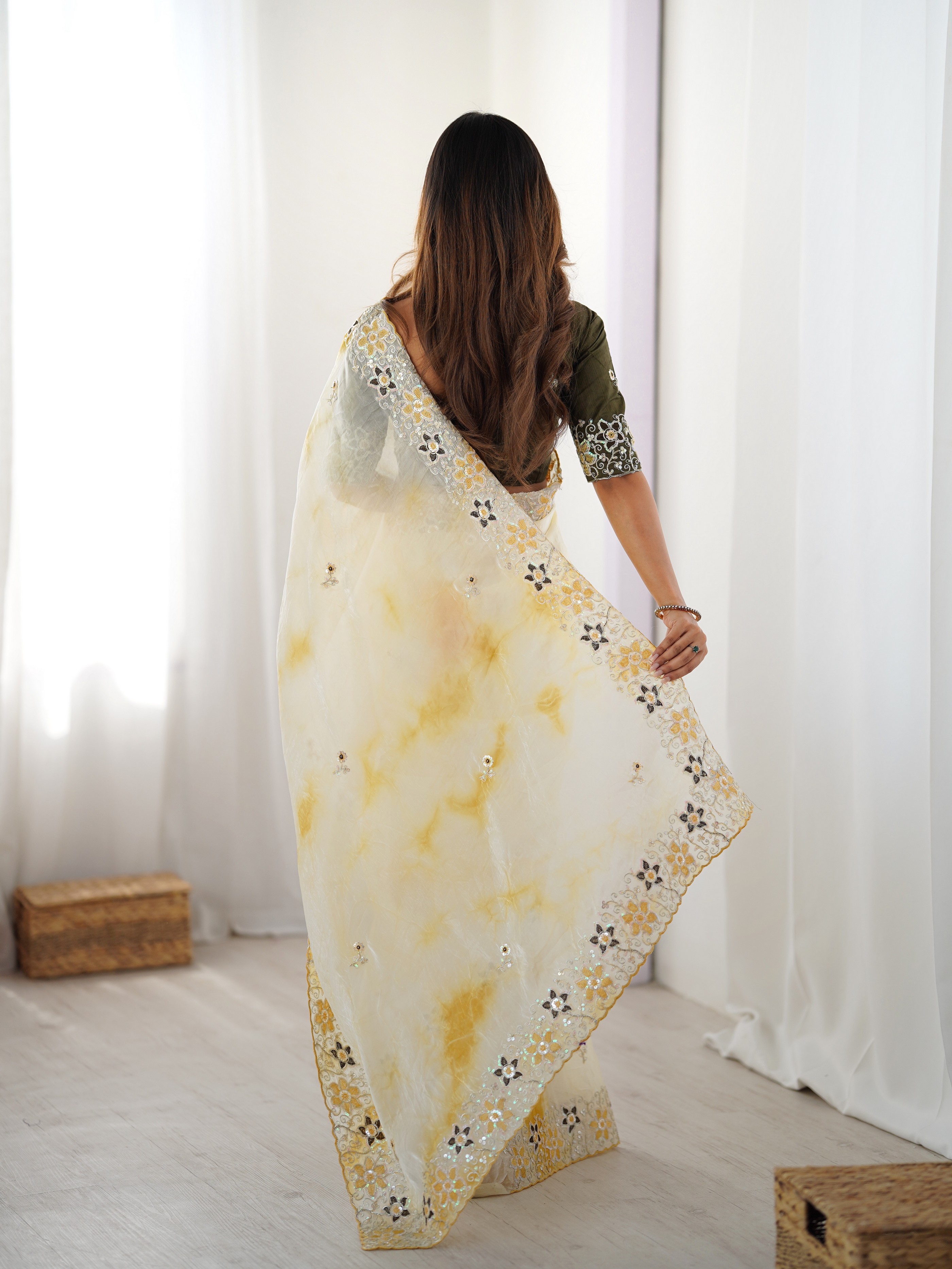 Made using high-quality fabrics such as silk, soft silk, georgette, organza, chiffon, crepe, linen, cotton blends ...etc .