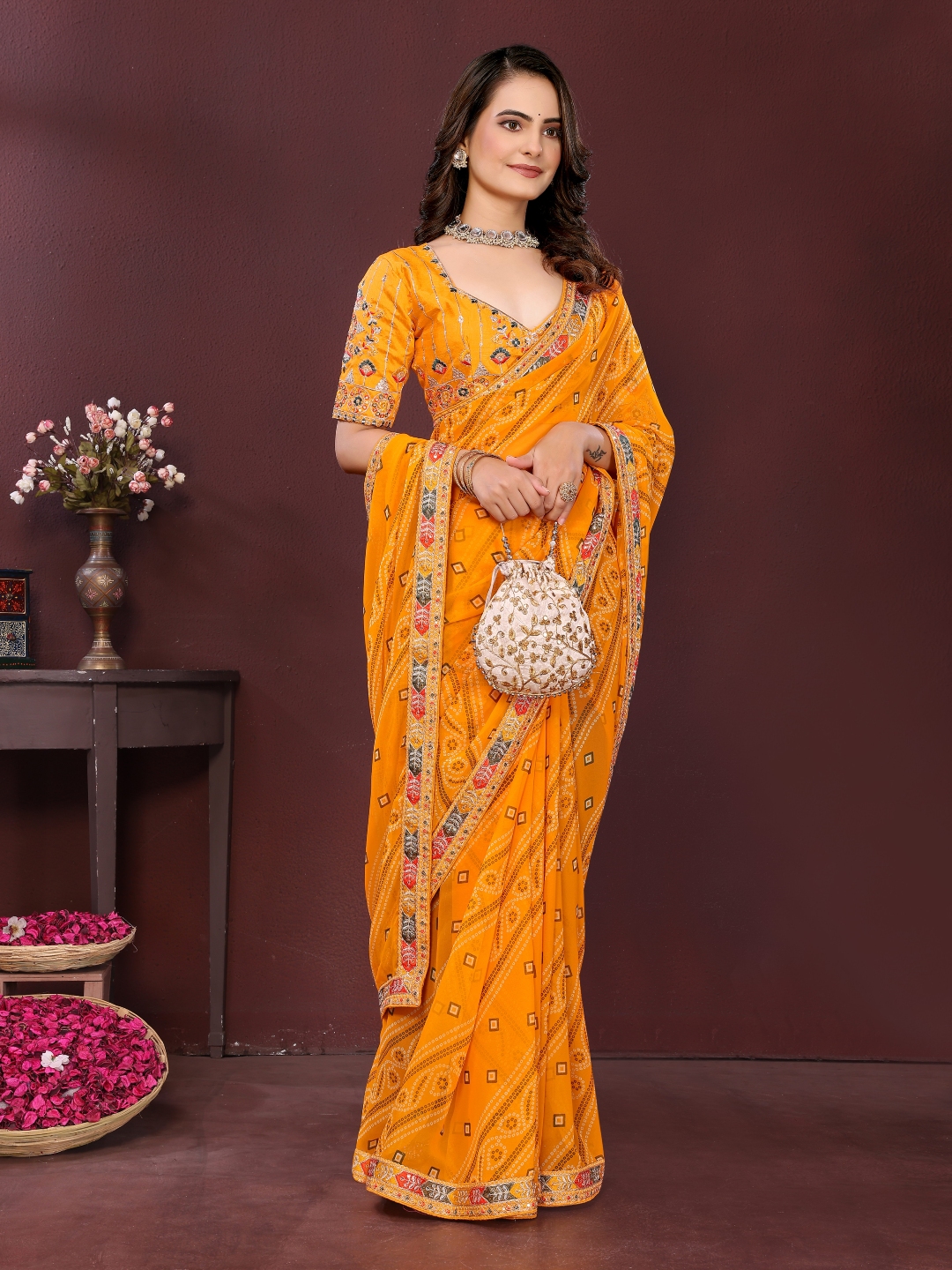 Yellow Color Georgette Fabric Bandhej Printed Traditional Saree