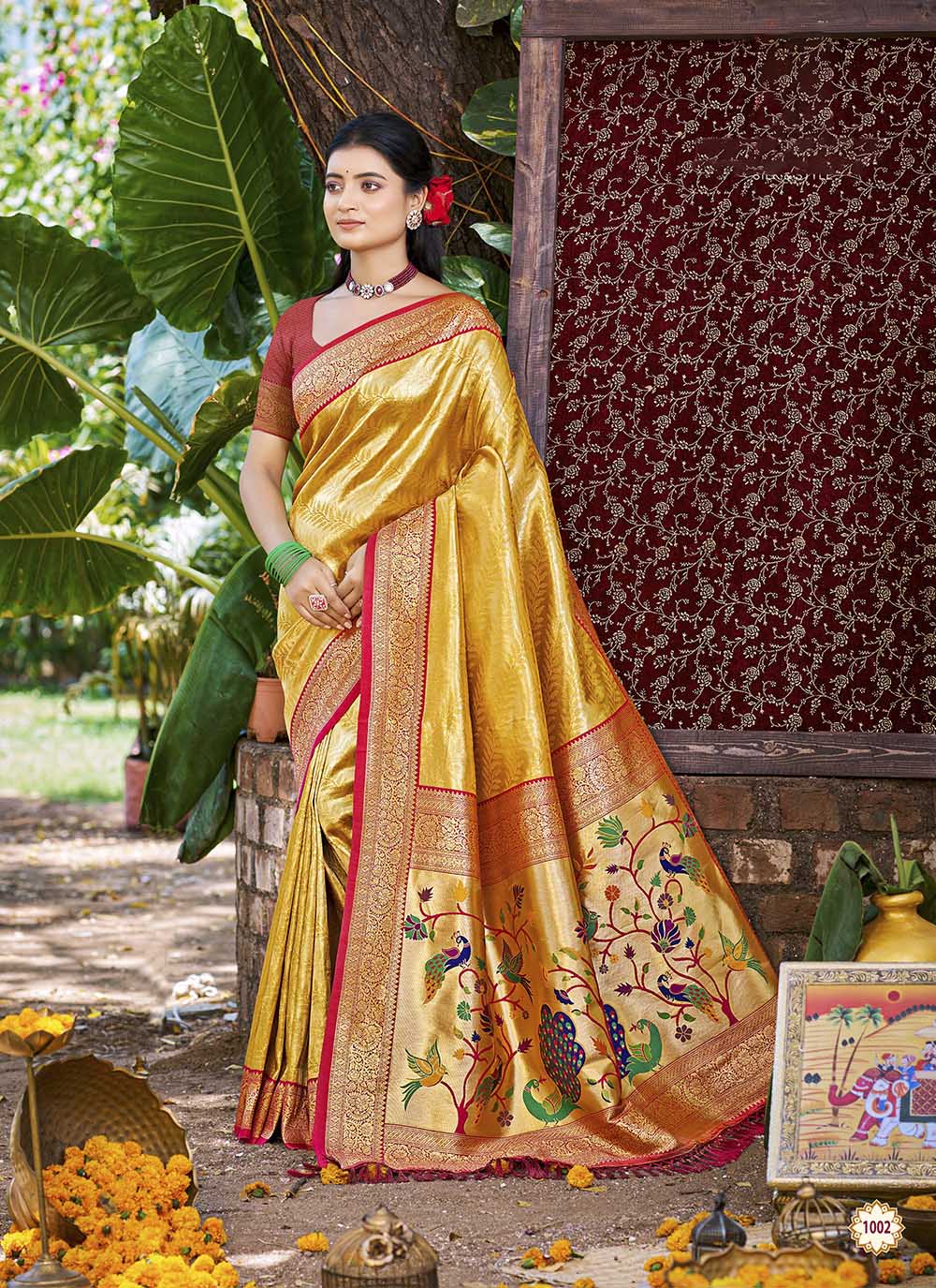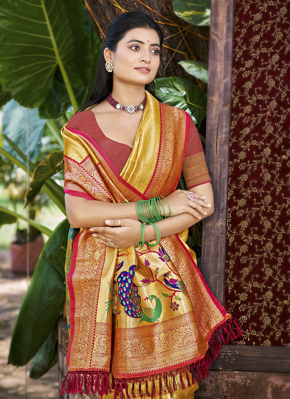Yellow Color Kanjivaram Silk Woven Jari Designer Ethnic Saree