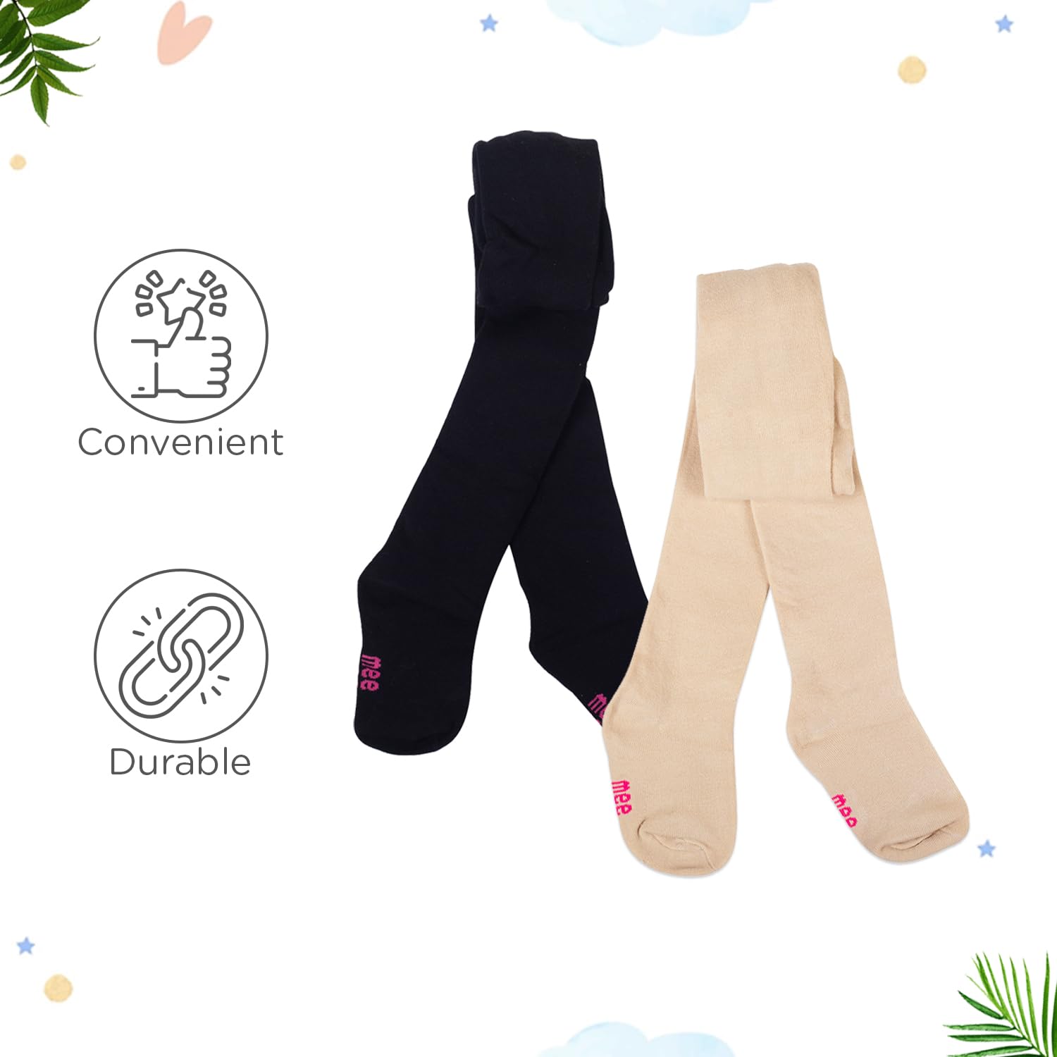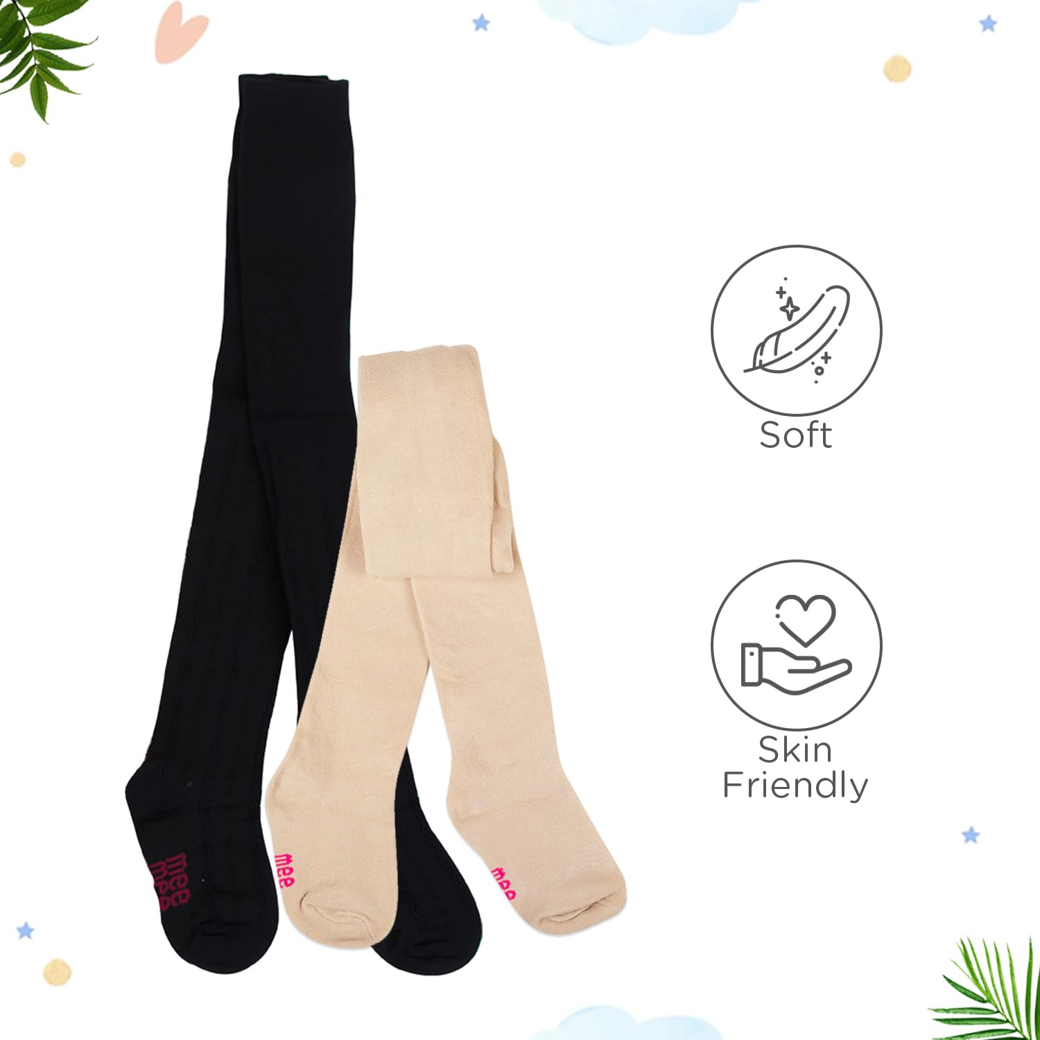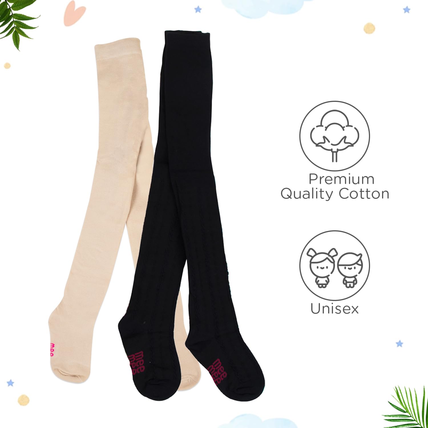 Mee Mee Baby Stockings | Unisex | Full Length | 100% Cotton |Stretchable| Snug Fit |Unisex Stockings | Pk of 2 | Cream & Black