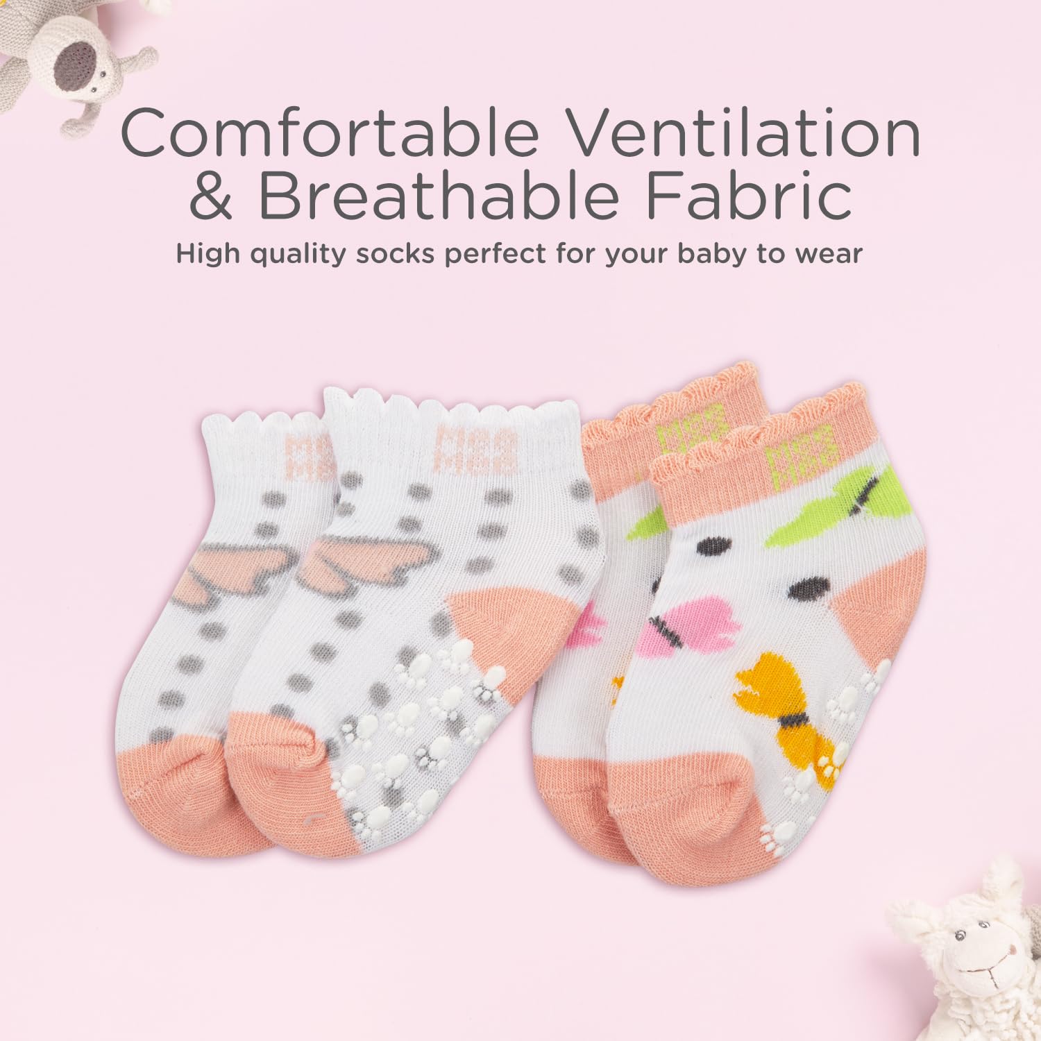 Soft Cuddly and Adorable: Indulge your baby's feet in irresistibly soft cuddly socks adorned with adorable designs for ultimate comfort and cuteness. Easy to Put On and Take Off: Enjoy hassle-free dressing with socks designed for easy put on and removal making daily routines a breeze. Warmth and Protection: Provide your baby's tender feet with thick cozy socks that offer warmth and protection against harsh elements like sunlight and cold. Style Statement: Elevate your baby's wardrobe with a delightful array of colors and designs. Machine Washable: The socks are machine washable for convenient care. Can Be Worn on All Occasions: Versatile in style these socks are perfect for any occasion ensuring your baby is both comfortable and stylish no matter the event. Extra Ease: Comes with ankle heel pull tab for extra ease.