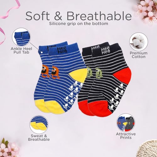 Mee Mee Cotton socks for baby | Anit - Skid, Soft, Colourful Prints For 6-12 Months (Pack of 6)