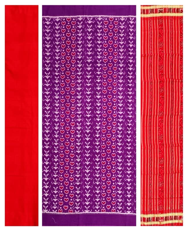 SAMBALPURI BANDHA CRAFT sambalpuri cotton dress material set(Heart designs Violet and red colors combination)